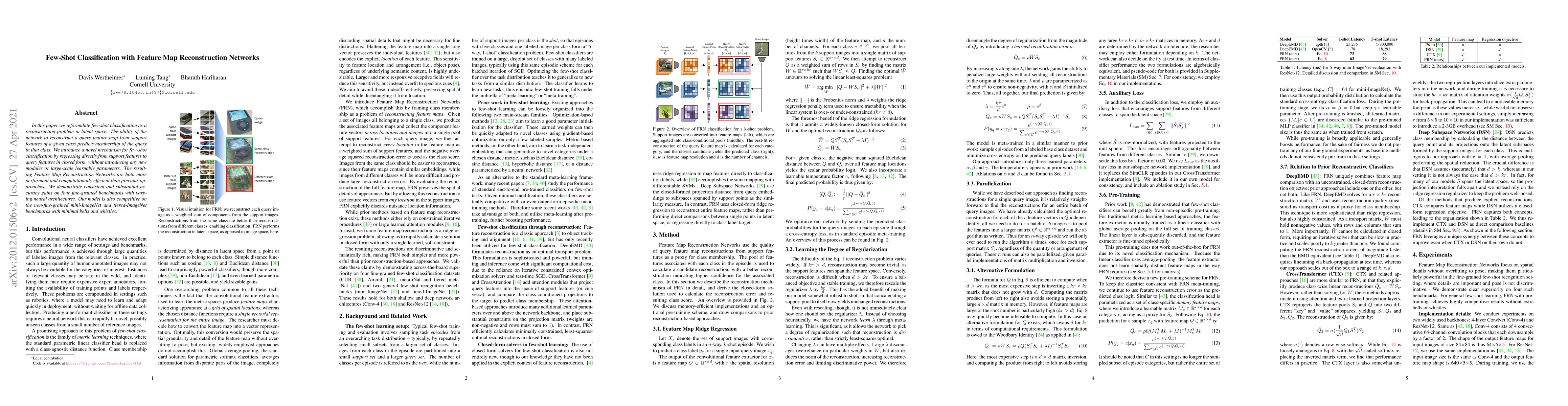 In this paper we reformulate few-shot classification as a reconstruction problem in latent space. The ability of the network to reconstruct a query feature map from support features of a given class predicts membership of the query in that class. We introduce a novel mechanism for few-shot classification by regressing directly from support features to query features in closed form, without introducing any new modules or large-scale learnable parameters. The resulting Feature Map Reconstruction Networks are both more performant and computationally efficient than previous approaches. We demonstrate consistent and substantial accuracy gains on four fine-grained benchmarks with varying neural architectures. Our model is also competitive on the non-fine-grained mini-ImageNet and tiered-ImageNet benchmarks with minimal bells and whistles.