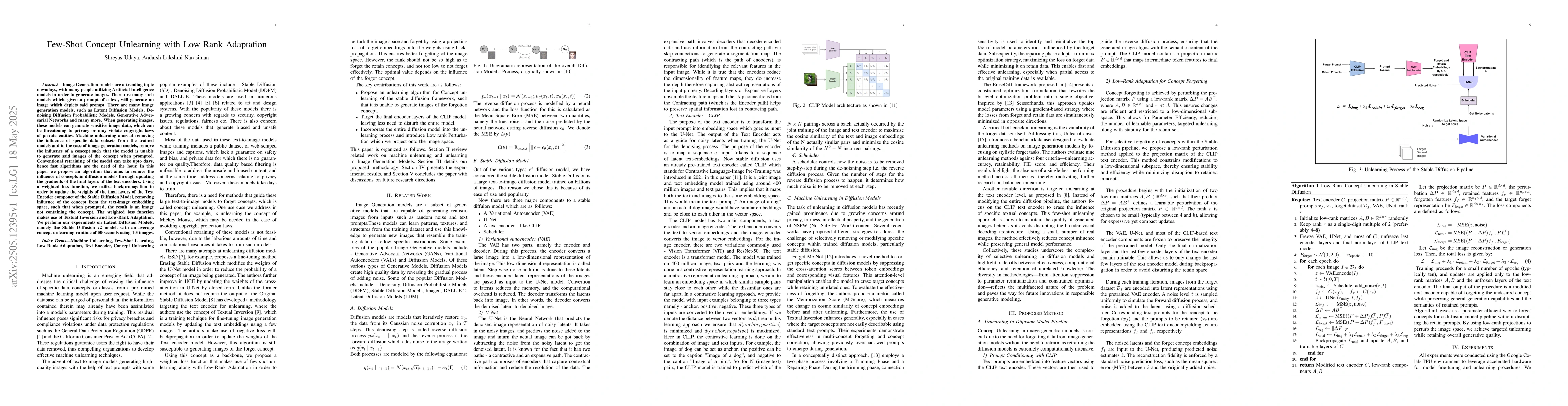The paper proposes an algorithm for few-shot concept unlearning in diffusion models, specifically targeting the Stable Diffusion v2 model. It updates the gradients of the final layers of the text encoders using a weighted loss function, which incorporates Textual Inversion and Low-Rank Adaptation to remove the influence of specific concepts from the text-image embedding space.