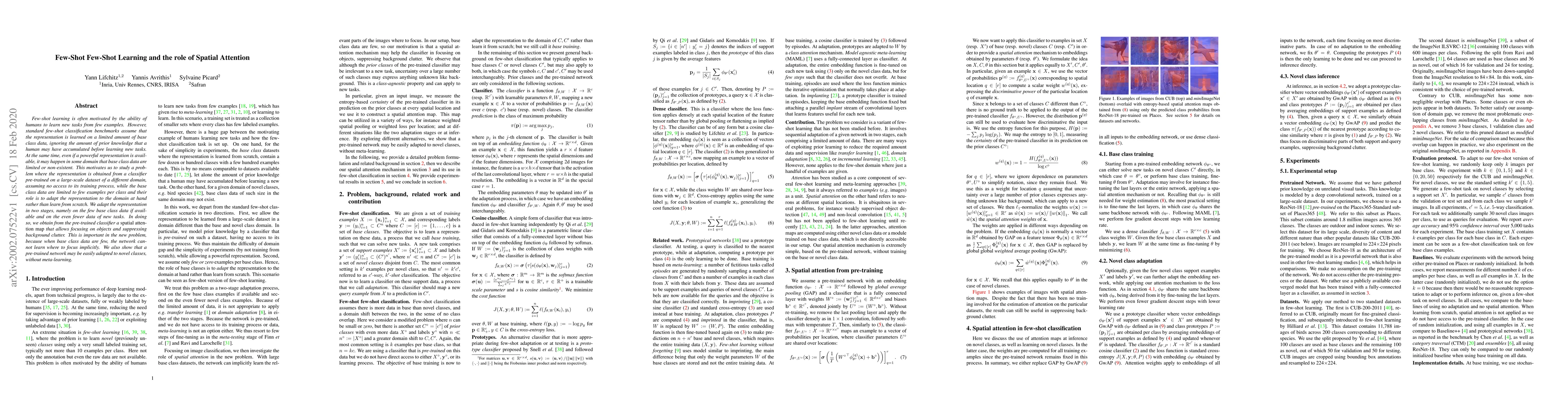 This paper explores few-shot learning with a pre-trained classifier, focusing on adapting the representation using limited base class data and new task data. The study introduces spatial attention to highlight objects and suppress background, enhancing performance when few examples are available.
