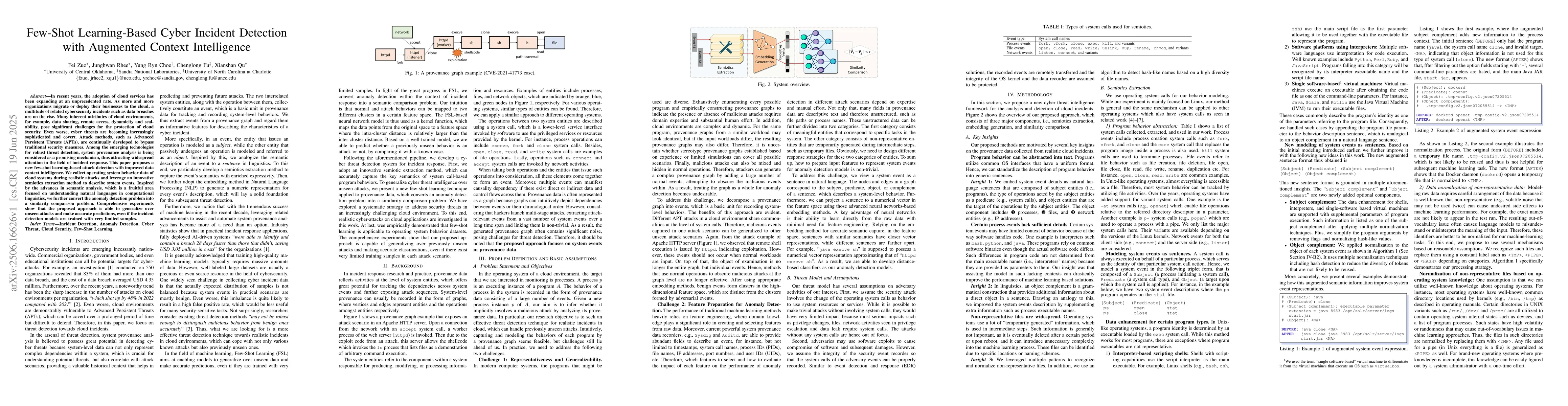 In recent years, the adoption of cloud services has been expanding at an unprecedented rate. As more and more organizations migrate or deploy their businesses to the cloud, a multitude of related cybersecurity incidents such as data breaches are on the rise. Many inherent attributes of cloud environments, for example, data sharing, remote access, dynamicity and scalability, pose significant challenges for the protection of cloud security. Even worse, cyber threats are becoming increasingly sophisticated and covert. Attack methods, such as Advanced Persistent Threats (APTs), are continually developed to bypass traditional security measures. Among the emerging technologies for robust threat detection, system provenance analysis is being considered as a promising mechanism, thus attracting widespread attention in the field of incident response. This paper proposes a new few-shot learning-based attack detection with improved data context intelligence. We collect operating system behavior data of cloud systems during realistic attacks and leverage an innovative semiotics extraction method to describe system events. Inspired by the advances in semantic analysis, which is a fruitful area focused on understanding natural languages in computational linguistics, we further convert the anomaly detection problem into a similarity comparison problem. Comprehensive experiments show that the proposed approach is able to generalize over unseen attacks and make accurate predictions, even if the incident detection models are trained with very limited samples.