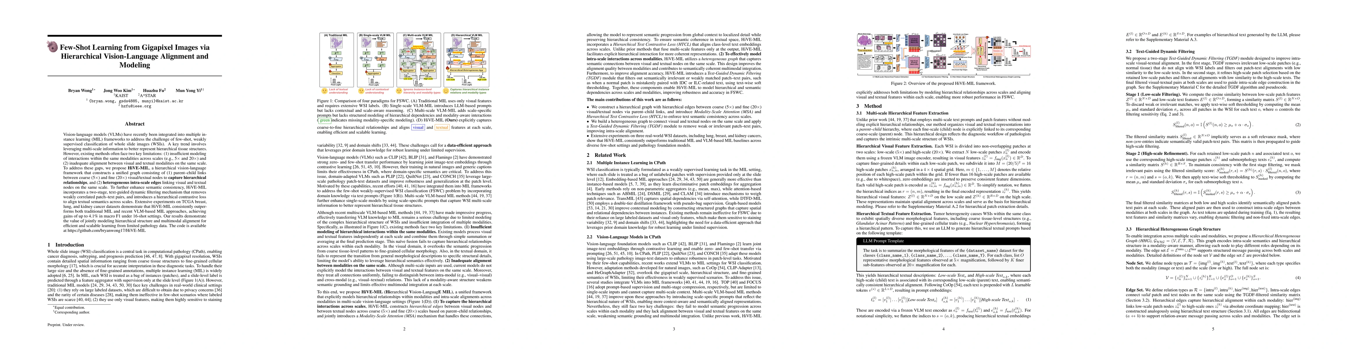 This research paper proposes HiVE-MIL, a hierarchical vision-language framework that improves few-shot learning from gigapixel images by jointly modeling hierarchical structure and multimodal alignment, achieving up to 4.1% gains in macro F1 over traditional approaches.