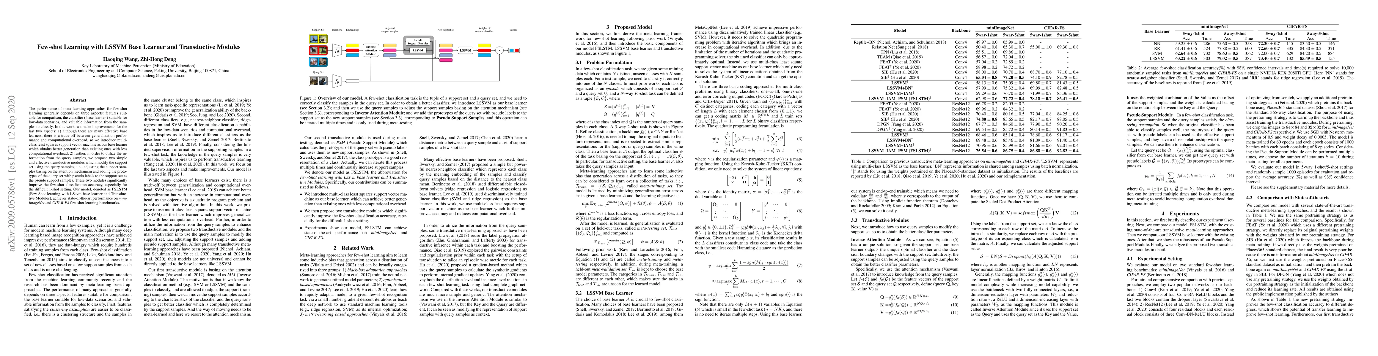This paper introduces a few-shot learning model using a multi-class least squares support vector machine as the base learner for better generalization and lower computational cost. It also proposes transductive modules to enhance the support set with query sample information, significantly improving classification accuracy, especially in 1-shot scenarios, achieving state-of-the-art results on miniImageNet and CIFAR-FS.