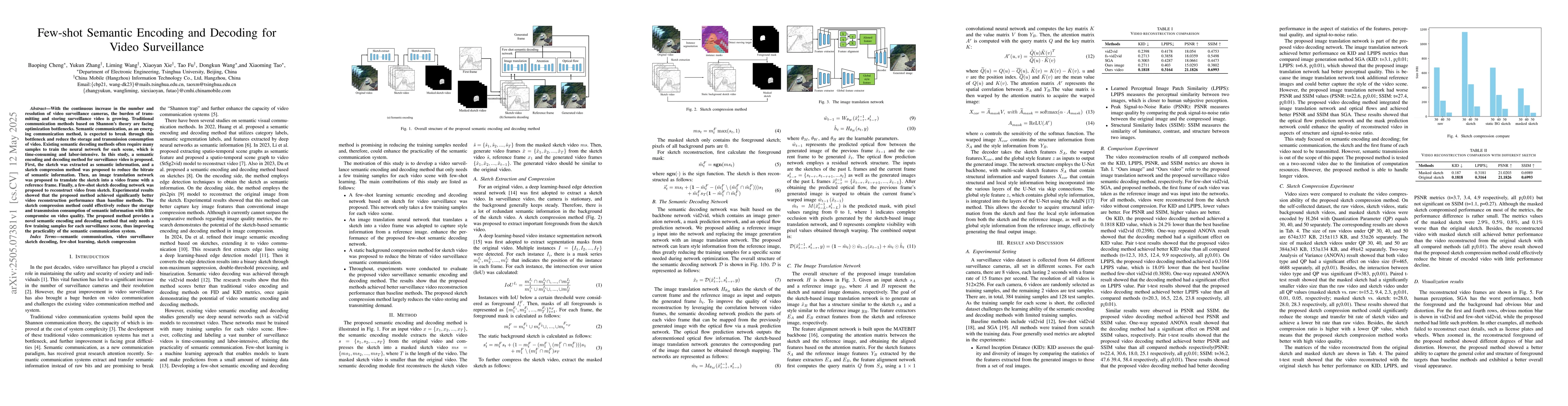 A new semantic encoding and decoding method for video surveillance reduces storage and transmission consumption, requiring only a few training samples per scene, and achieves better video reconstruction performance than baseline methods.