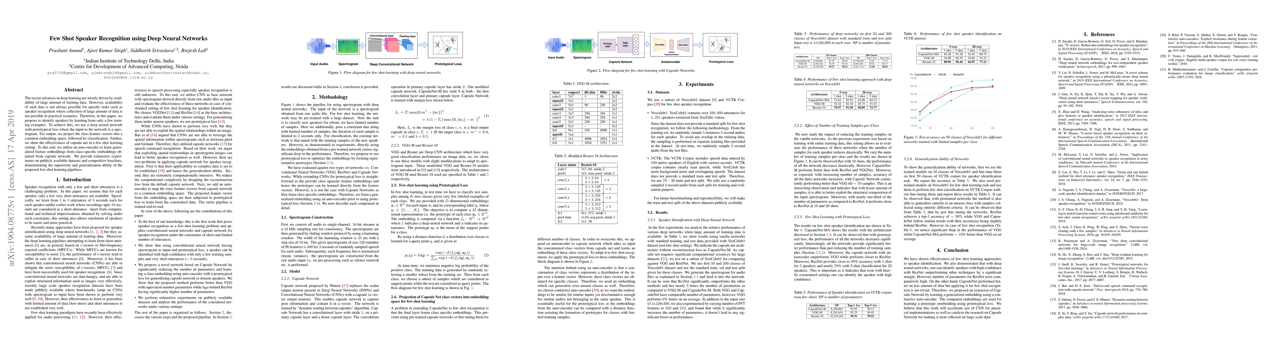 This paper proposes a deep neural network approach for few-shot speaker recognition using prototypical loss and capsule networks. It demonstrates the effectiveness of generalized feature embeddings learned from class-specific embeddings, showcasing superior performance on public datasets compared to baselines.