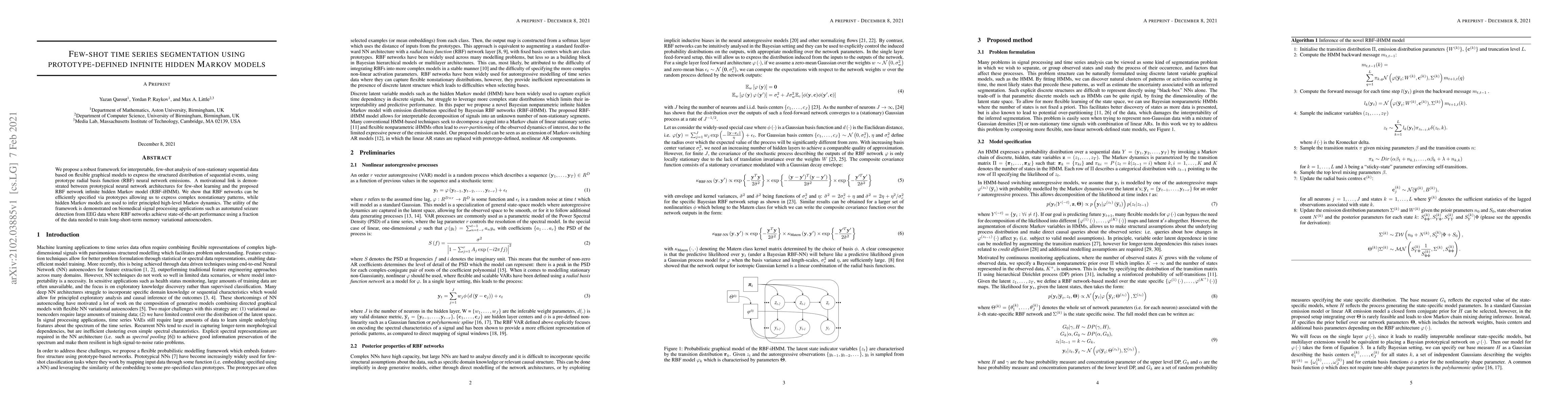 We propose a robust framework for interpretable, few-shot analysis of non-stationary sequential data based on flexible graphical models to express the structured distribution of sequential events, using prototype radial basis function (RBF) neural network emissions. A motivational link is demonstrated between prototypical neural network architectures for few-shot learning and the proposed RBF network infinite hidden Markov model (RBF-iHMM). We show that RBF networks can be efficiently specified via prototypes allowing us to express complex nonstationary patterns, while hidden Markov models are used to infer principled high-level Markov dynamics. The utility of the framework is demonstrated on biomedical signal processing applications such as automated seizure detection from EEG data where RBF networks achieve state-of-the-art performance using a fraction of the data needed to train long-short-term memory variational autoencoders.