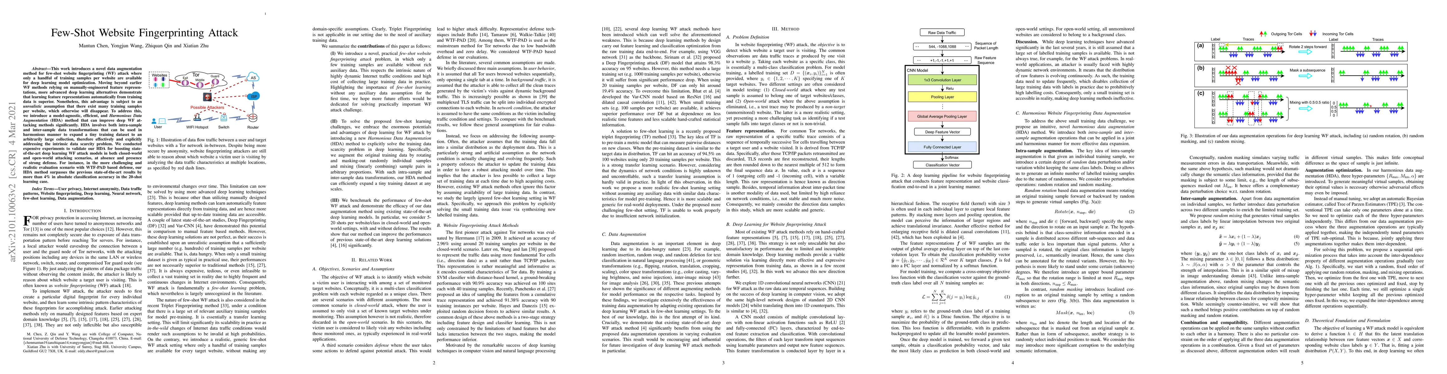 This paper proposes a novel Harmonious Data Augmentation (HDA) method to enhance few-shot website fingerprinting attacks, addressing the scarcity of training samples. The HDA method improves deep learning models by expanding tiny training datasets through intra-sample and inter-sample transformations, significantly boosting attack accuracy even against strong defenses.