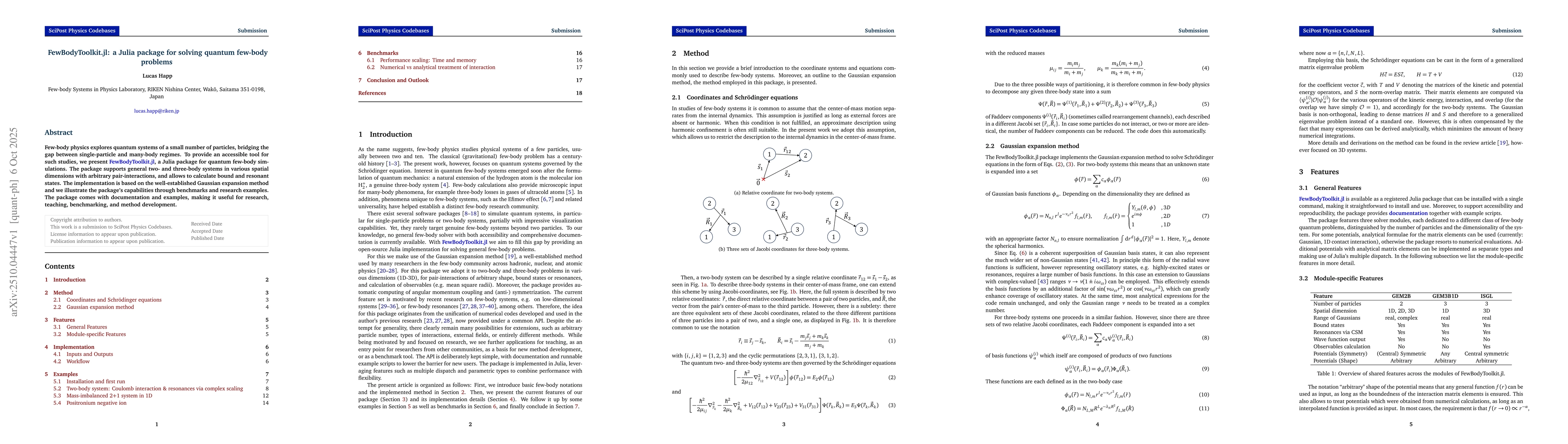 Creation of FewBodyToolkit.jl with modular architecture, documentation, and examples demonstrating Gaussian expansion method applications for quantum few-body problems