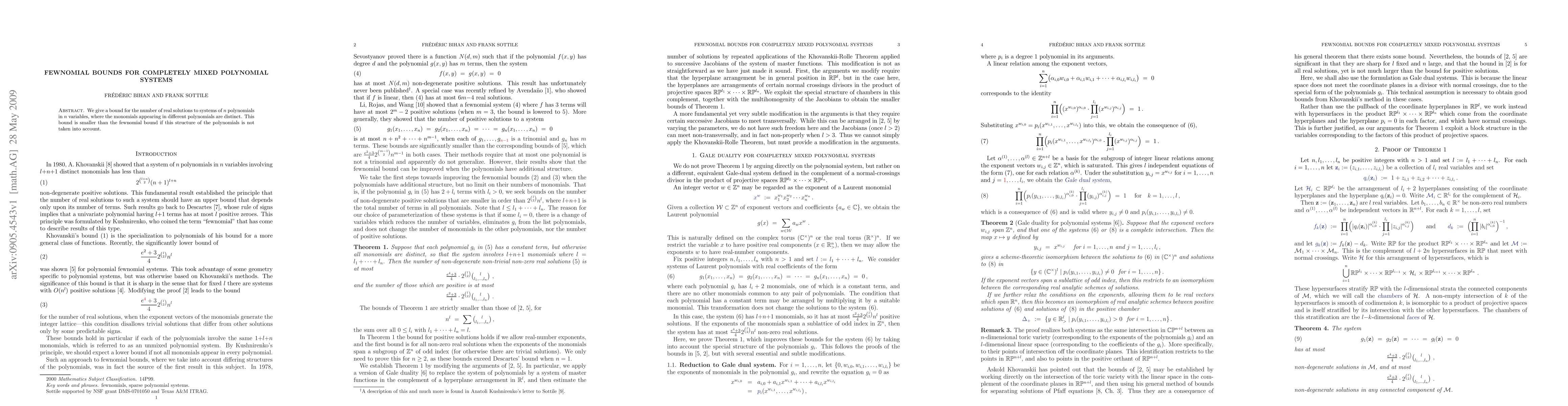 We give a bound for the number of real solutions to systems of n polynomials in n variables, where the monomials appearing in different polynomials are distinct. This bound is smaller than the fewnomial bound if this structure of the polynomials is not taken into account.