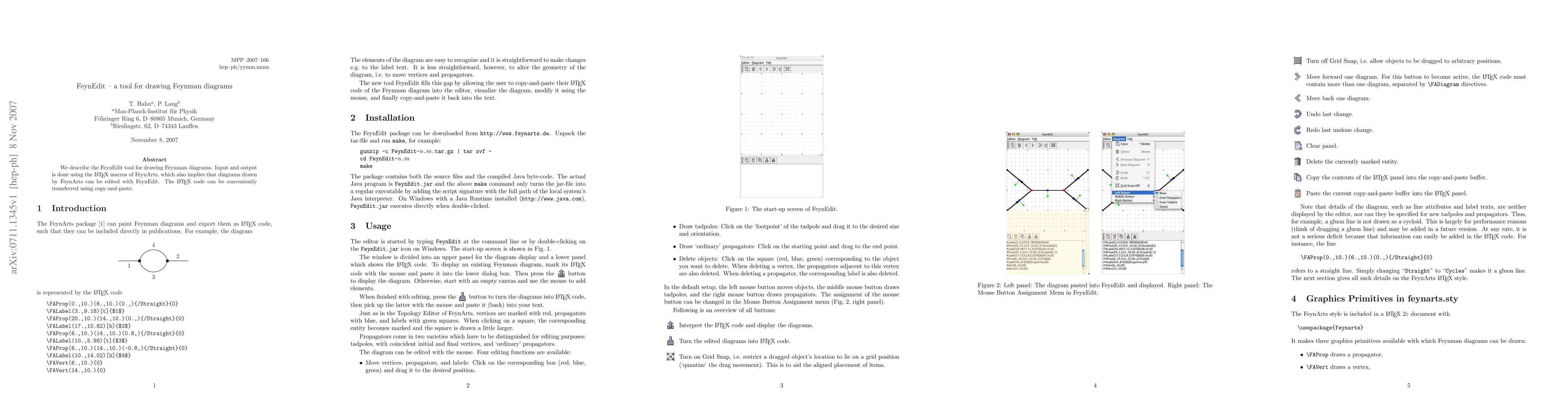 Summary: FeynEdit is a user-friendly tool for drawing Feynman diagrams that interfaces with FeynArts LaTeX macros, allowing seamless editing of diagrams generated by FeynArts and easy transfer of LaTeX code via copy-and-paste.