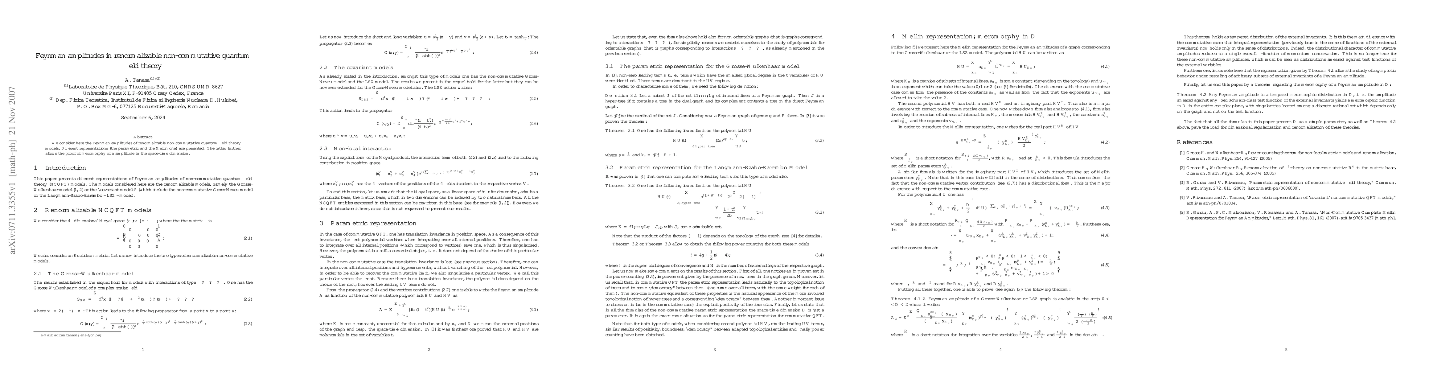 This paper investigates Feynman amplitudes in renormalizable non-commutative quantum field theory, presenting both parametric and Mellin representations. It also proves the meromorphy of an amplitude in the space-time dimension using the Mellin representation.