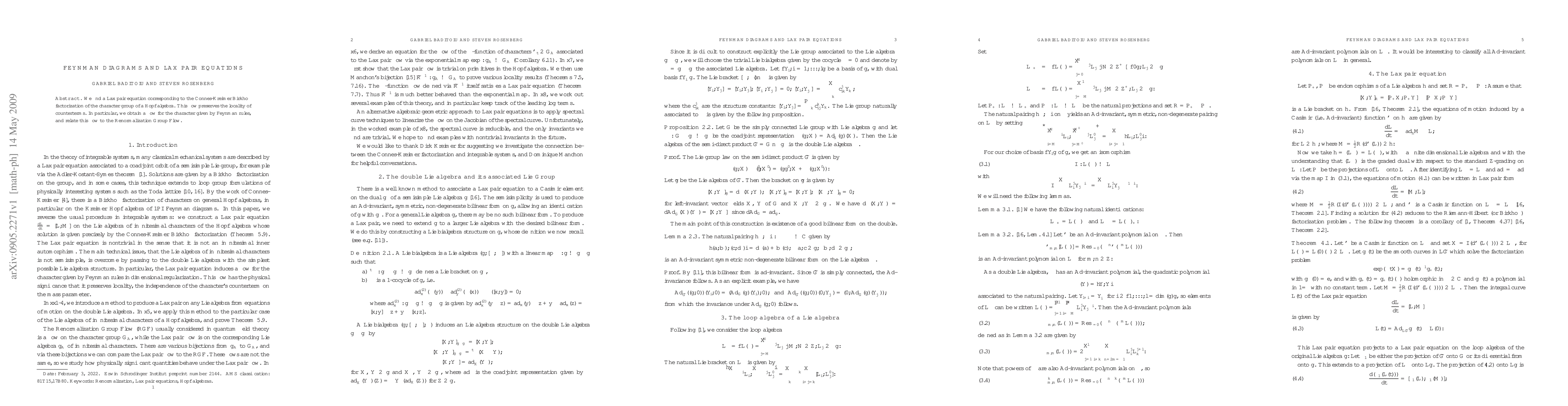 We find a Lax pair equation corresponding to the Connes-Kreimer Birkhoff factorization of the character group of a Hopf algebra. This flow preserves the locality of counterterms. In particular, we obtain a flow for the character given by Feynman rules, and relate this flow to the Renormalization Group Flow.