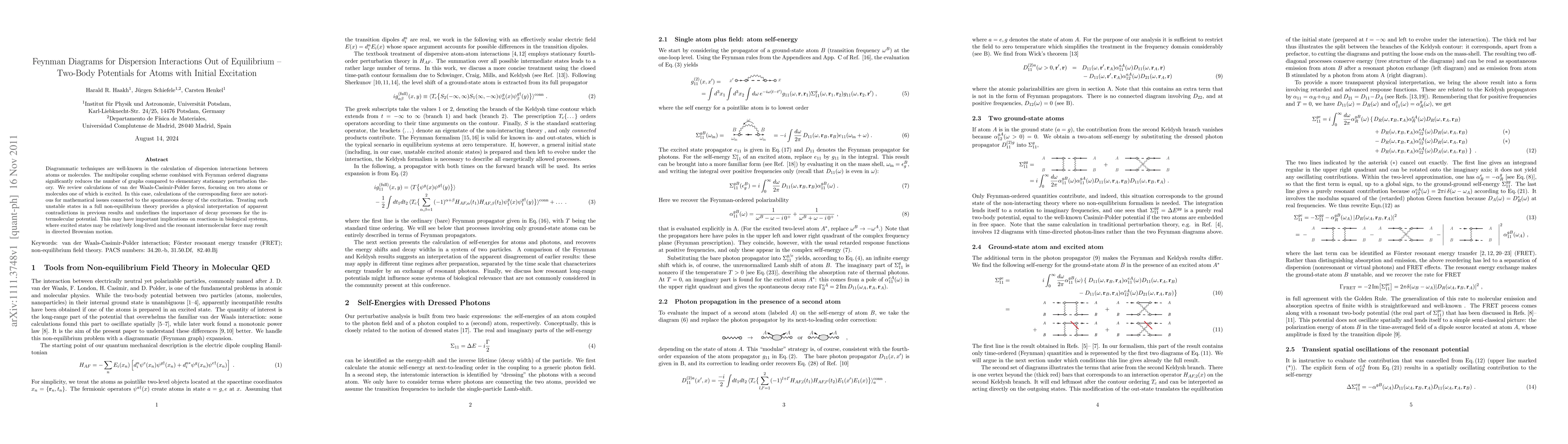 Researchers developed Feynman diagrams to calculate dispersion interactions between atoms with initial excitation, resolving mathematical issues and providing a new understanding of intermolecular forces in non-equilibrium systems.