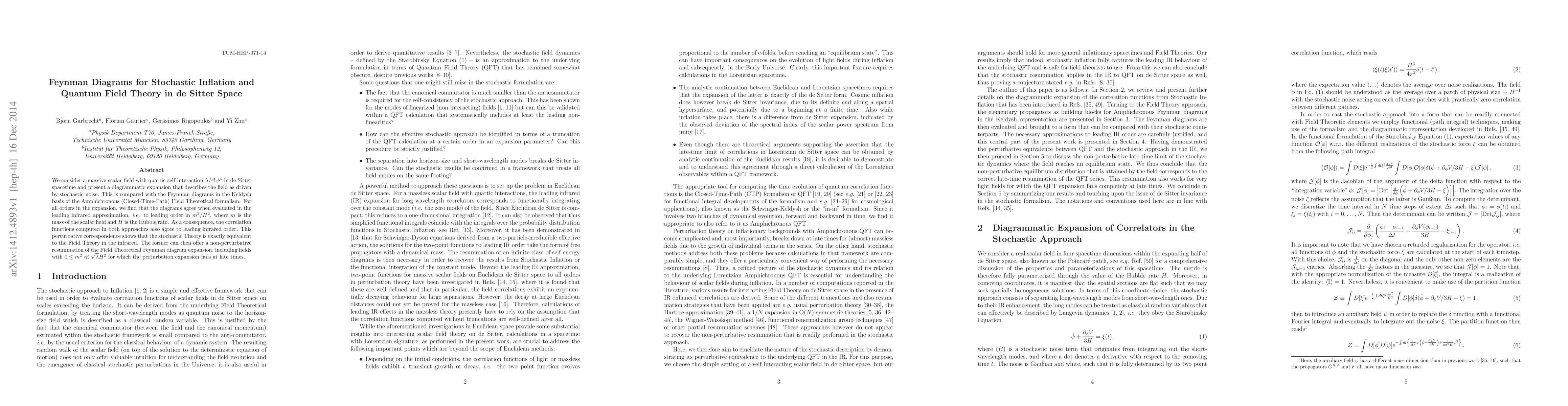 This paper explores a massive scalar field in de Sitter spacetime with quartic self-interaction, comparing stochastic inflation models to Feynman diagrams in the Keldysh basis. Both methods yield equivalent results in the leading infrared approximation, demonstrating the equivalence of stochastic theory and field theory in the infrared.