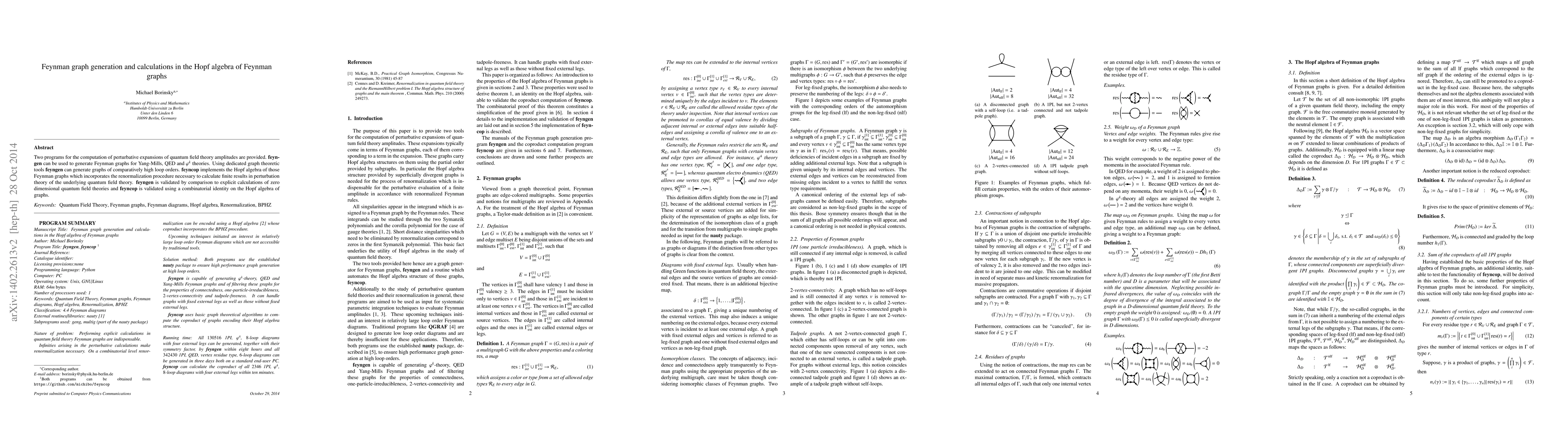 Two programs for the computation of perturbative expansions of quantum field theory amplitudes are provided. feyngen can be used to generate Feynman graphs for Yang-Mills, QED and $\varphi^k$ theories. Using dedicated graph theoretic tools feyngen can generate graphs of comparatively high loop orders. feyncop implements the Hopf algebra of those Feynman graphs which incorporates the renormalization procedure necessary to calculate finite results in perturbation theory of the underlying quantum field theory. feyngen is validated by comparison to explicit calculations of zero dimensional quantum field theories and feyncop is validated using a combinatorial identity on the Hopf algebra of graphs.