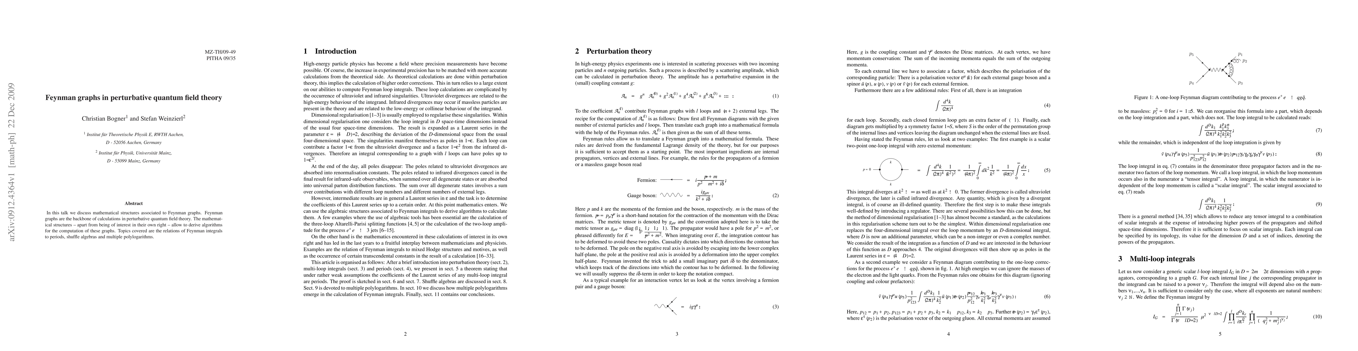 In this talk we discuss mathematical structures associated to Feynman graphs. Feynman graphs are the backbone of calculations in perturbative quantum field theory. The mathematical structures -- apart from being of interest in their own right -- allow to derive algorithms for the computation of these graphs. Topics covered are the relations of Feynman integrals to periods, shuffle algebras and multiple polylogarithms.