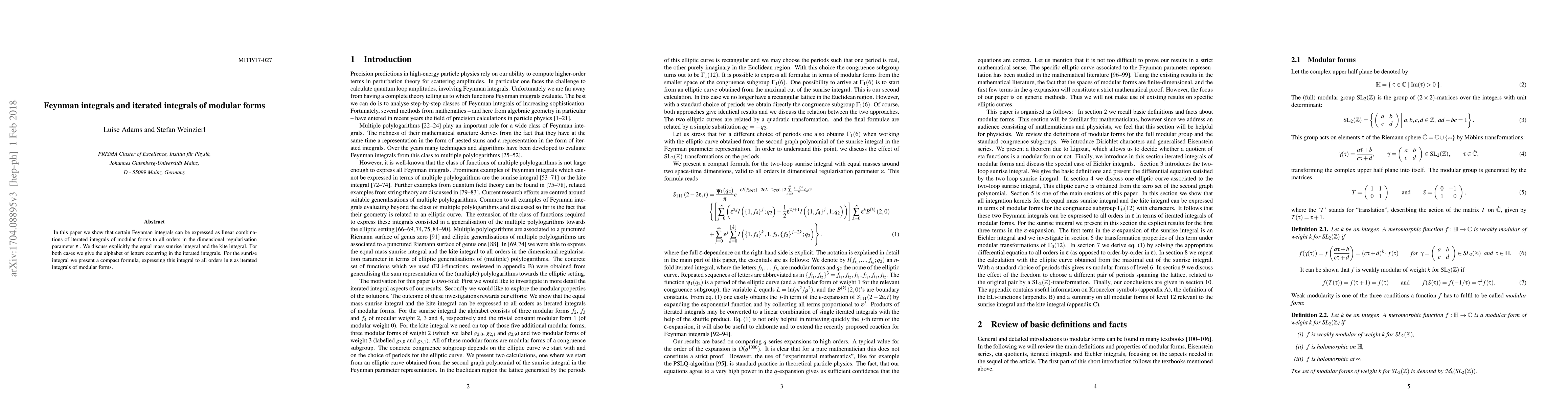 This paper demonstrates that specific Feynman integrals can be represented as linear combinations of iterated integrals of modular forms across all orders in the dimensional regularization parameter ε. It explicitly examines the equal mass sunrise and kite integrals, providing a compact formula for the former.