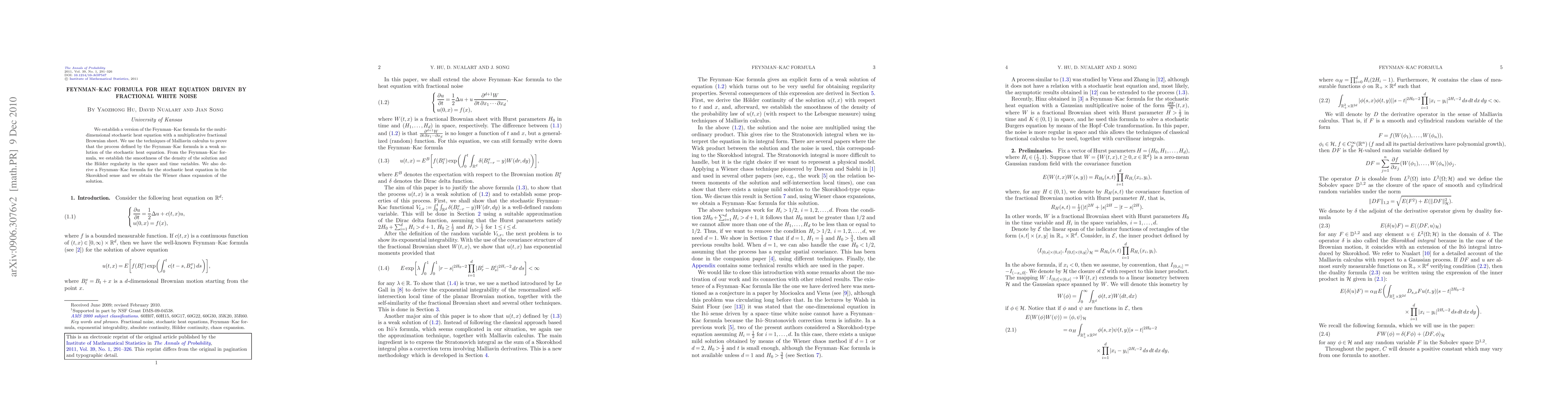 The paper establishes a Feynman-Kac formula for a multidimensional stochastic heat equation driven by fractional Brownian noise, proving it is a weak solution using Malliavin calculus and showing smoothness and Hölder regularity of the solution's density. It also derives a Skorokhod sense Feynman-Kac formula and provides a Wiener chaos expansion of the solution.