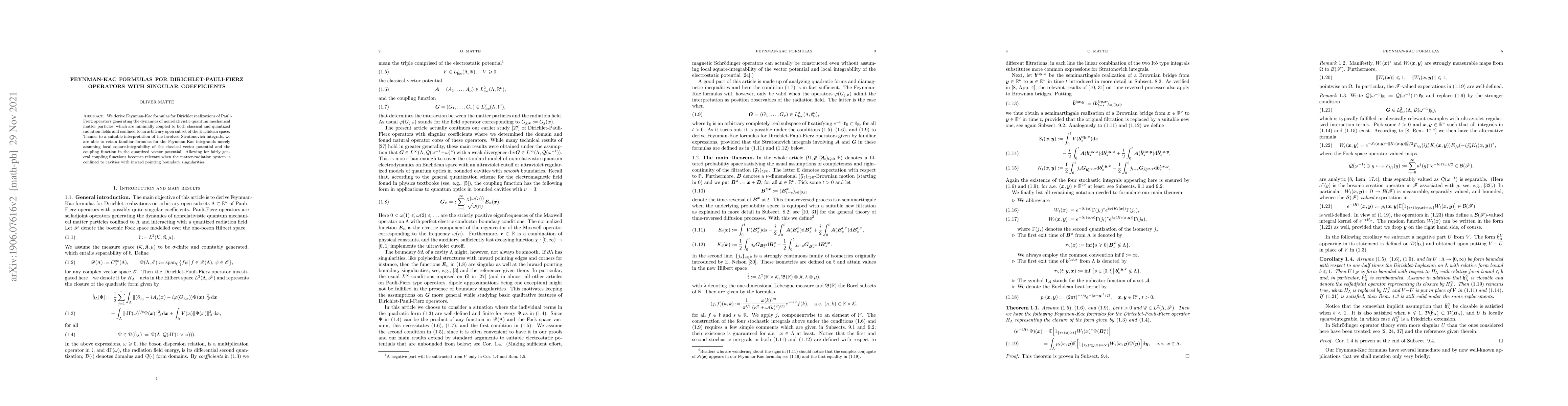 This paper derives Feynman-Kac formulas for Dirichlet realizations of Pauli-Fierz operators, which describe nonrelativistic quantum particles coupled to radiation fields. The authors manage to retain familiar integrands by assuming local square-integrability of the vector potentials, allowing for the study of systems with boundary singularities.