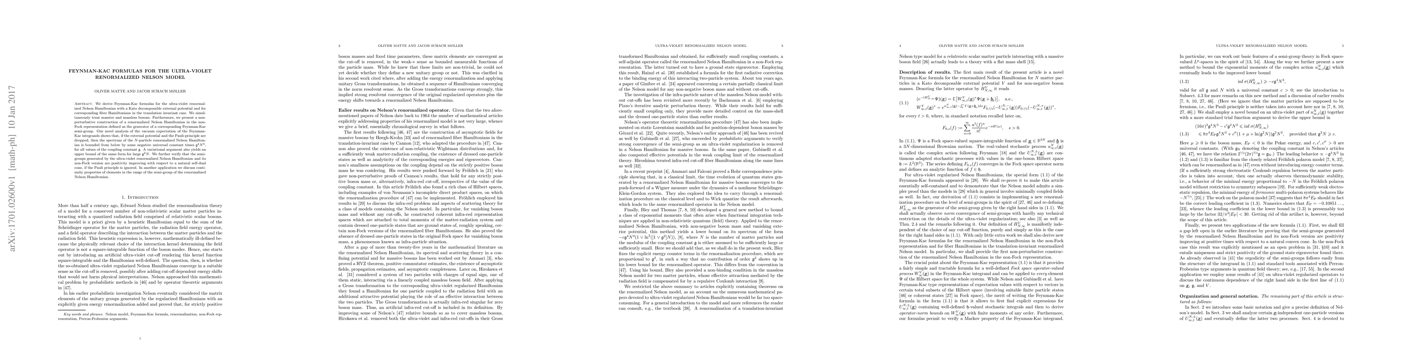 We derive Feynman-Kac formulas for the ultra-violet renormalized Nelson Hamiltonian with a Kato decomposable external potential and for corresponding fiber Hamiltonians in the translation invariant case. We simultaneously treat massive and massless bosons. Furthermore, we present a non-perturbative construction of a renormalized Nelson Hamiltonian in the non-Fock representation defined as the generator of a corresponding Feynman-Kac semi-group. Our novel analysis of the vacuum expectation of the Feynman-Kac integrands shows that, if the external potential and the Pauli-principle are dropped, then the spectrum of the $N$-particle renormalized Nelson Hamiltonian is bounded from below by some negative universal constant times $g^4N^3$, for all values of the coupling constant $g$. A variational argument also yields an upper bound of the same form for large $g^2N$. We further verify that the semi-groups generated by the ultra-violet renormalized Nelson Hamiltonian and its non-Fock version are positivity improving with respect to a natural self-dual cone, if the Pauli principle is ignored. In another application we discuss continuity properties of elements in the range of the semi-group of the renormalized Nelson Hamiltonian.