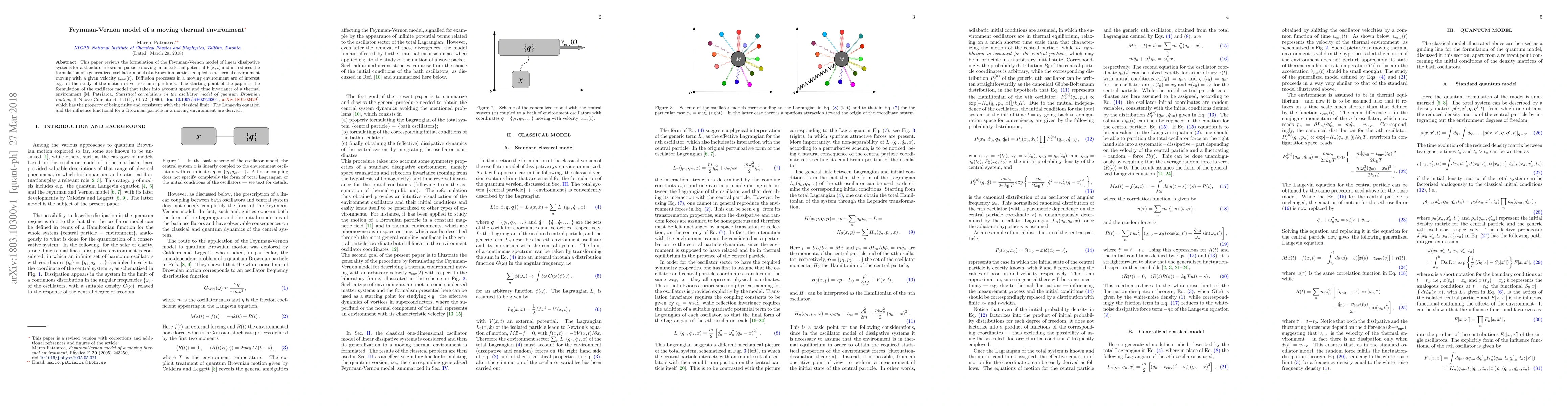 This paper formulates the Feynman-Vernon model for a Brownian particle in a thermal environment moving with a velocity, extending the standard model to account for space and time invariance. The derived Langevin equation and influence functional are consistent with the classical limit and applicable to phenomena like vortex motion in superfluids.