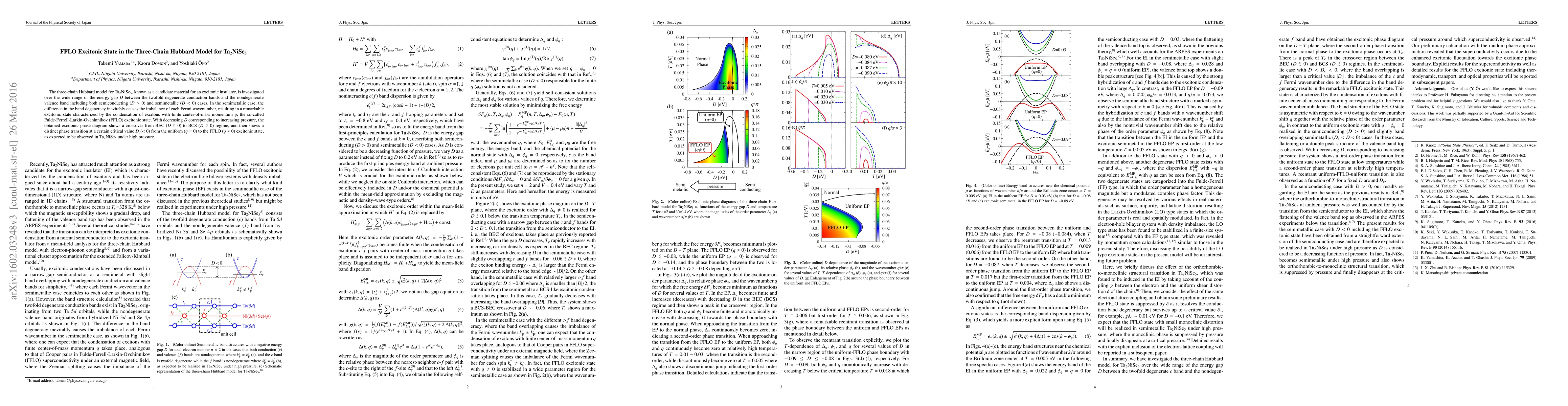 Researchers investigated the three-chain Hubbard model for Ta2NiSe5 to understand its excitonic state, finding a phase transition from a uniform to an excitonic state under high pressure, with the possibility of an exotic Fulde-Ferrell-Larkin-Ovchinnikov (FFLO) state.