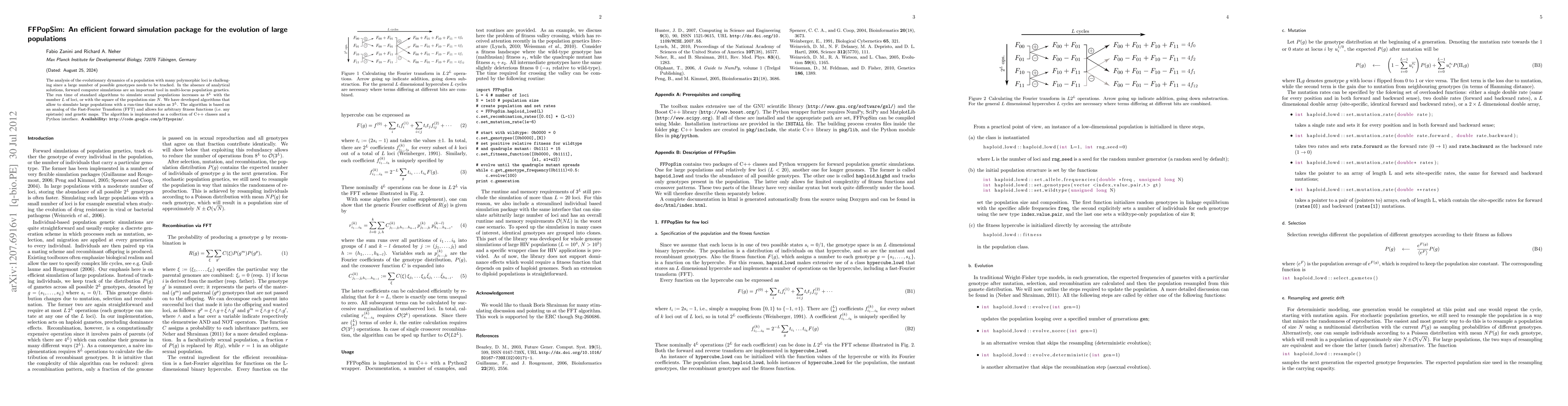 The analysis of the evolutionary dynamics of a population with many polymorphic loci is challenging since a large number of possible genotypes needs to be tracked. In the absence of analytical solutions, forward computer simulations are an important tool in multi-locus population genetics. The run time of standard algorithms to simulate sexual populations increases as 8^L with the number L of loci, or with the square of the population size N. We have developed algorithms that allow to simulate large populations with a run-time that scales as 3^L. The algorithm is based on an analog of the Fast-Fourier Transform (FFT) and allows for arbitrary fitness functions (i.e. any epistasis) and genetic maps. The algorithm is implemented as a collection of C++ classes and a Python interface.