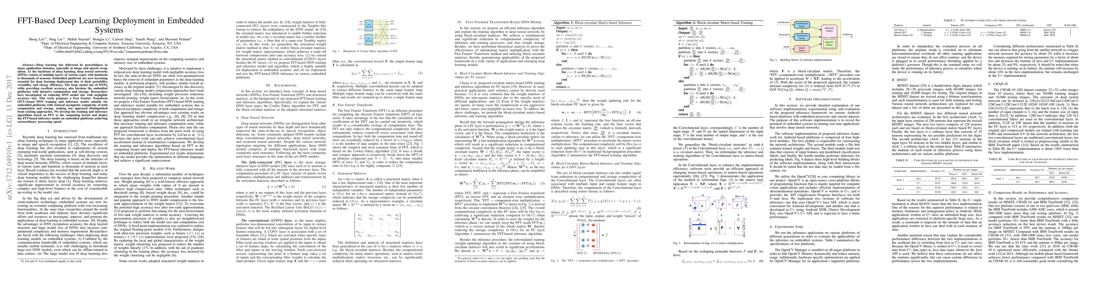 This paper proposes an FFT-based deep learning deployment method for embedded systems, aiming to reduce the computational and storage burden of deep neural networks (DNNs) while maintaining accuracy. The FFT-based training and inference algorithms significantly improve processing speed and efficiency on embedded platforms.