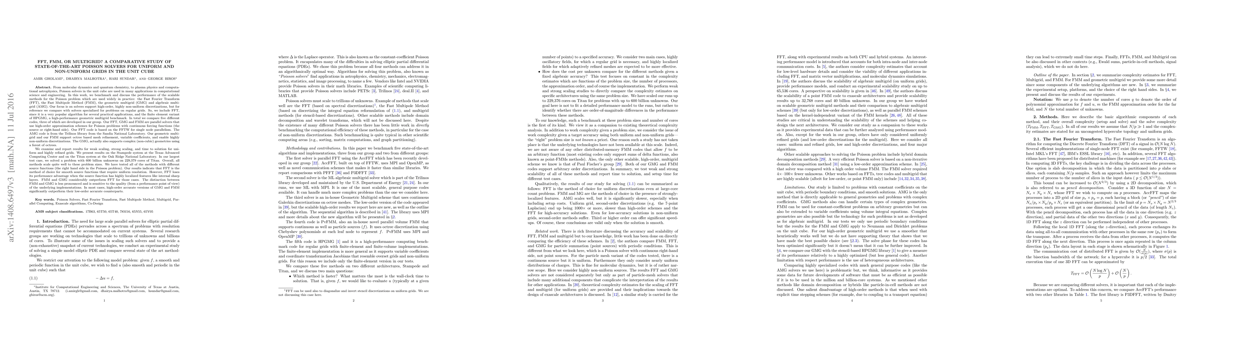 In this work, we benchmark and discuss the performance of the scalable methods for the Poisson problem which are used widely in practice: the fast Fourier transform (FFT), the fast multipole method (FMM), the geometric multigrid (GMG), and algebraic multigrid (AMG). In total we compare five different codes, three of which are developed in our group. Our FFT, GMG, and FMM are parallel solvers that use high-order approximation schemes for Poisson problems with continuous forcing functions (the source or right-hand side). We examine and report results for weak scaling, strong scaling, and time to solution for uniform and highly refined grids. We present results on the Stampede system at the Texas Advanced Computing Center and on the Titan system at the Oak Ridge National Laboratory. In our largest test case, we solved a problem with 600 billion unknowns on 229,379 cores of Titan. Overall, all methods scale quite well to these problem sizes. We have tested all of the methods with different source functions (the right-hand side in the Poisson problem). Our results indicate that FFT is the method of choice for smooth source functions that require uniform resolution. However, FFT loses its performance advantage when the source function has highly localized features like internal sharp layers. FMM and GMG considerably outperform FFT for those cases. The distinction between FMM and GMG is less pronounced and is sensitive to the quality (from a performance point of view) of the underlying implementations. The high-order accurate versions of GMG and FMM significantly outperform their low-order accurate counterparts.