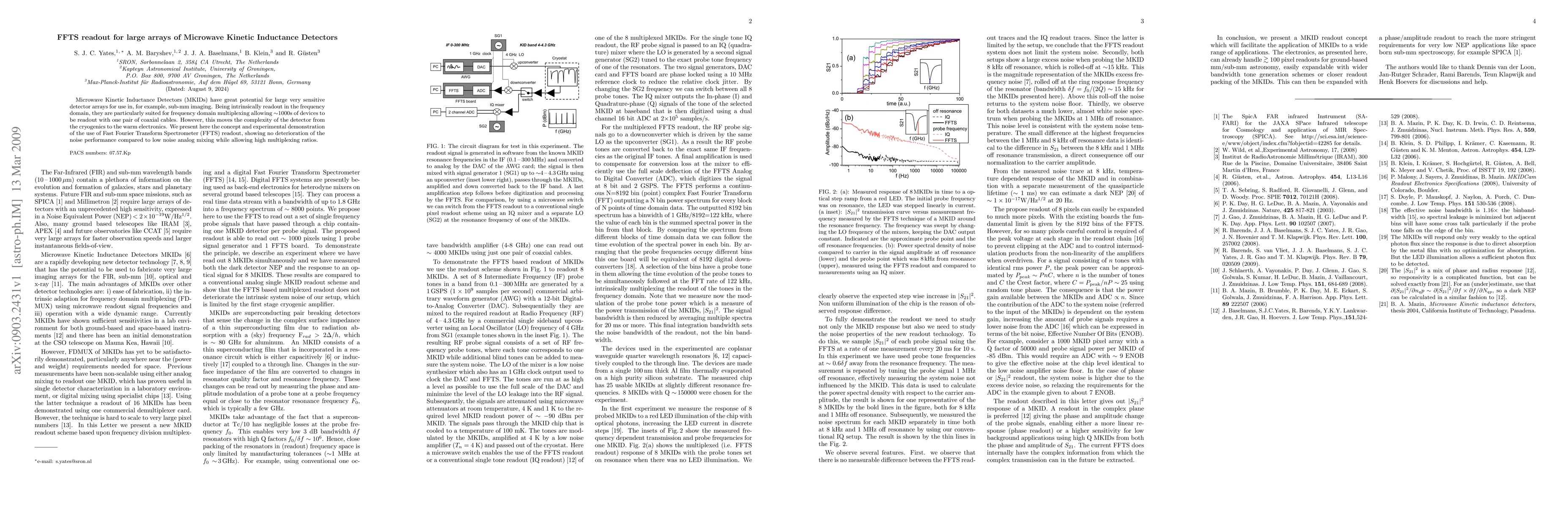 Microwave Kinetic Inductance Detectors (MKIDs) have great potential for large very sensitive detector arrays for use in, for example, sub-mm imaging. Being intrinsically readout in the frequency domain, they are particularly suited for frequency domain multiplexing allowing $\sim$1000s of devices to be readout with one pair of coaxial cables. However, this moves the complexity of the detector from the cryogenics to the warm electronics. We present here the concept and experimental demonstration of the use of Fast Fourier Transform Spectrometer (FFTS) readout, showing no deterioration of the noise performance compared to low noise analog mixing while allowing high multiplexing ratios.