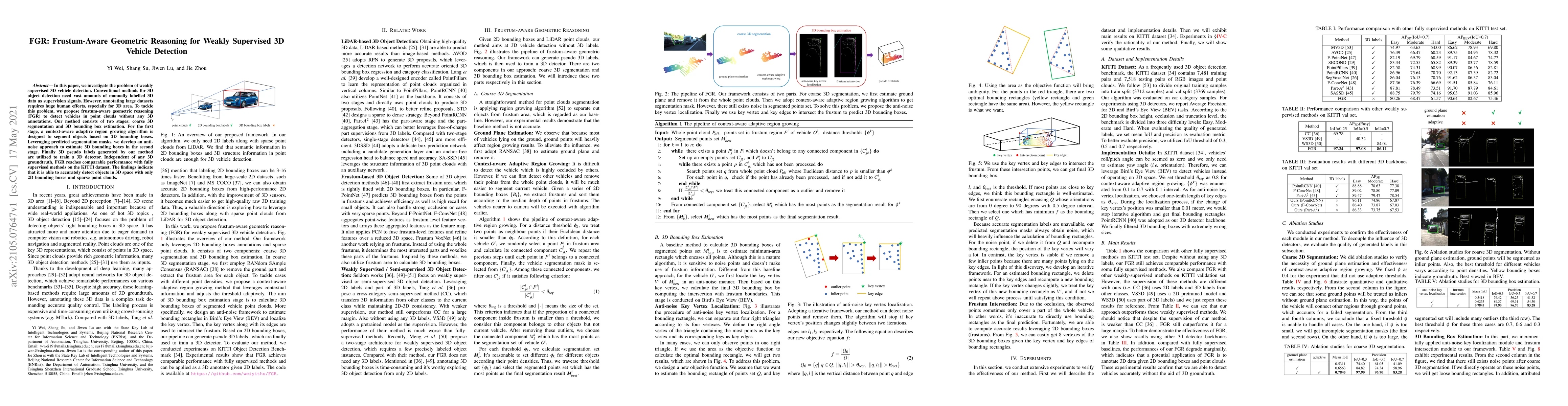 This paper proposes frustum-aware geometric reasoning (FGR) for weakly supervised 3D vehicle detection, utilizing 2D bounding boxes and sparse point clouds without requiring 3D annotations. The method achieves comparable performance to fully supervised approaches on the KITTI dataset.
