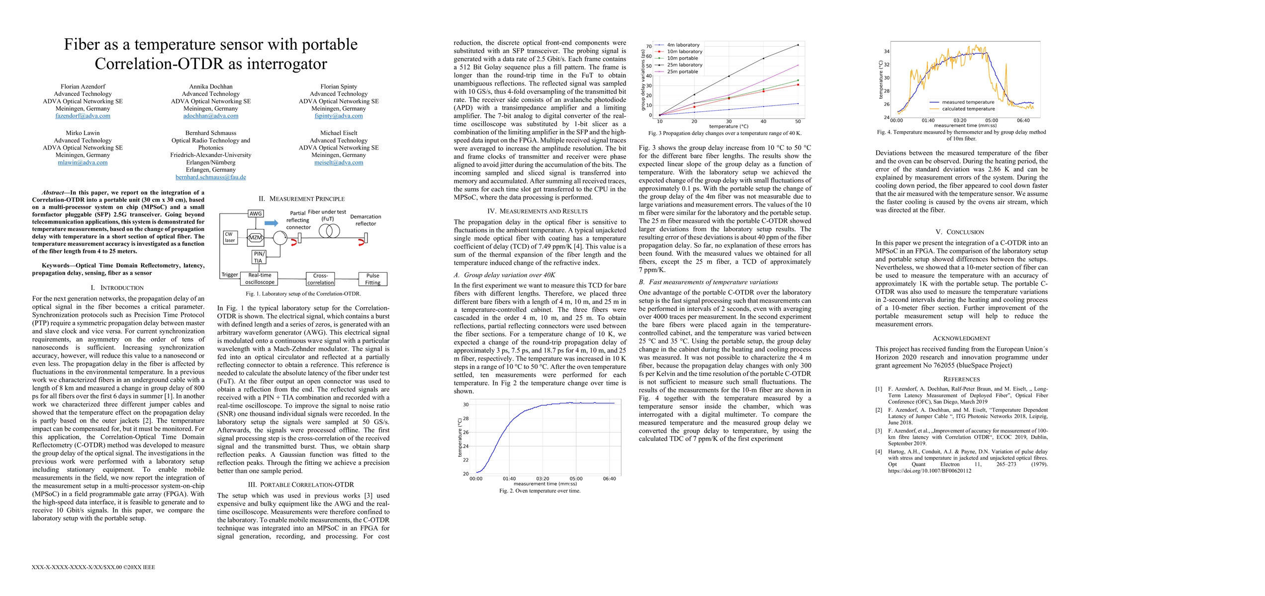 This paper presents a portable Correlation-OTDR system for temperature sensing via optical fiber, achieving accuracy over fiber lengths from 4 to 25 meters by measuring changes in propagation delay. The system is compact and based on an MPSoC and a 2.5G SFP transceiver.
