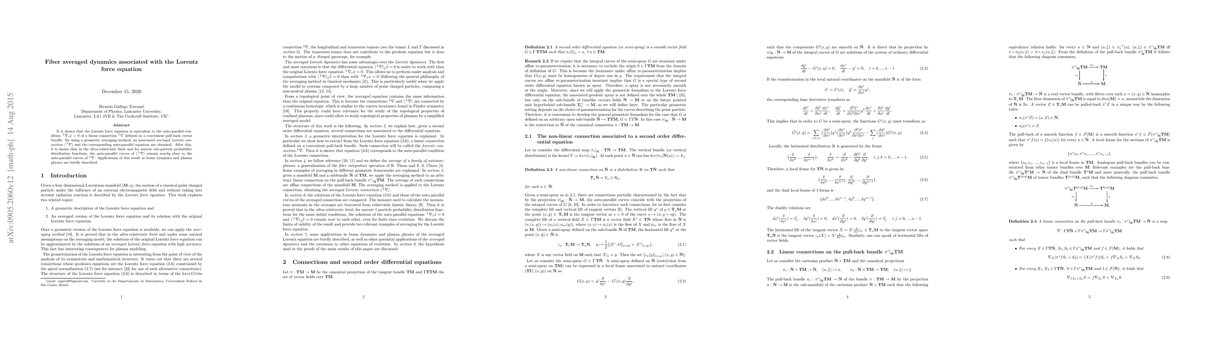 This paper demonstrates the equivalence of the Lorentz force equation to the auto-parallel condition of a linear connection on a vector bundle, and uses geometric averaging to derive an averaged Lorentz connection. It shows that in the ultra-relativistic limit, the averaged connection's auto-parallel curves closely approximate those of the original connection, with applications in beam dynamics and plasma physics.