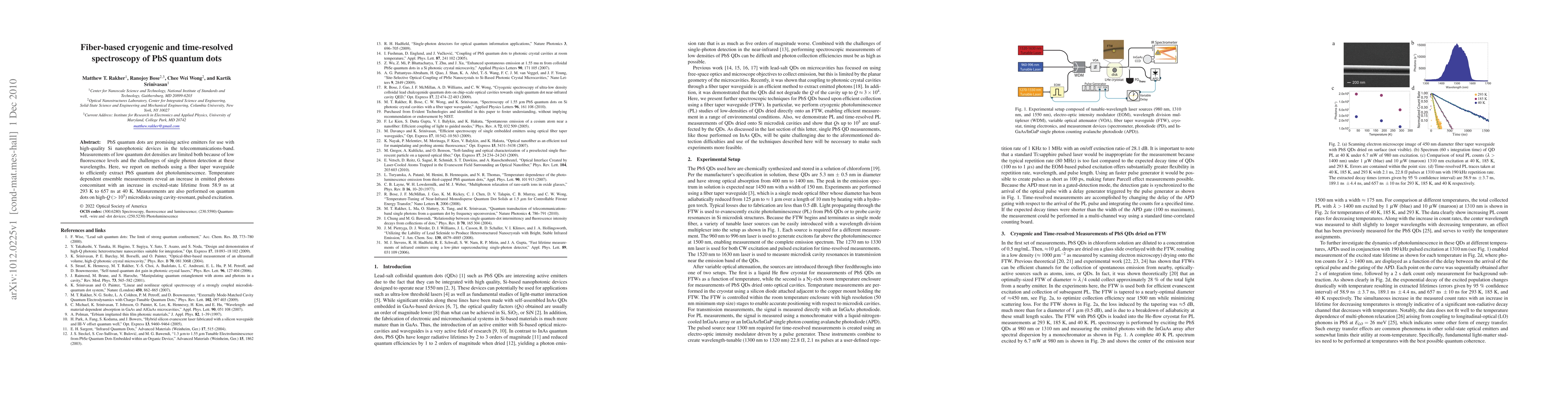 This study introduces fiber taper waveguide techniques to enhance the extraction of PbS quantum dot photoluminescence, revealing increased photon emission and excited-state lifetime from 58.9 ns at room temperature to 657 ns at cryogenic temperatures, and explores cavity-resonant effects on microdisks.
