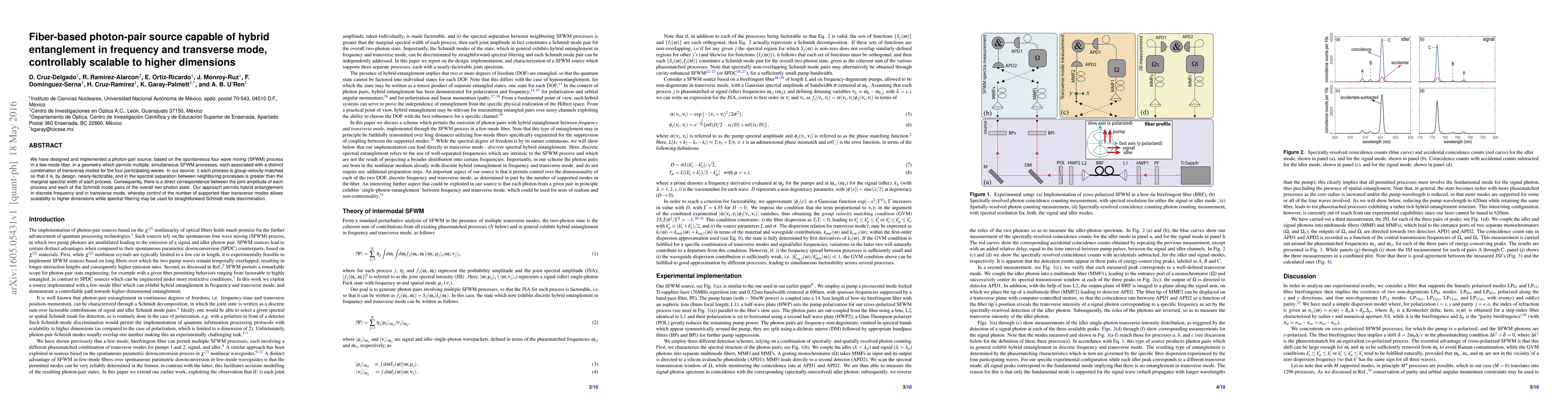 We have designed and implemented a photon-pair source, based on the spontaneous four wave mixing (SFWM) process in a few-mode fiber, in a geometry which permits multiple, simultaneous SFWM processes, each associated with a distinct combination of transverse modes for the four participating waves. In our source: i) each process is group-velocity-matched so that it is, by design, nearly-factorable, and ii) the spectral separation between neighboring processes is greater than the marginal spectral width of each process. Consequently, there is a direct correspondence between the joint amplitude of each process and each of the Schmidt mode pairs of the overall two-photon state. Our approach permits hybrid entanglement in discrete frequency and in transverse mode, whereby control of the number of supported fiber transverse modes allows scalability to higher dimensions while spectral filtering may be used for straightforward Schmidt mode discrimination.