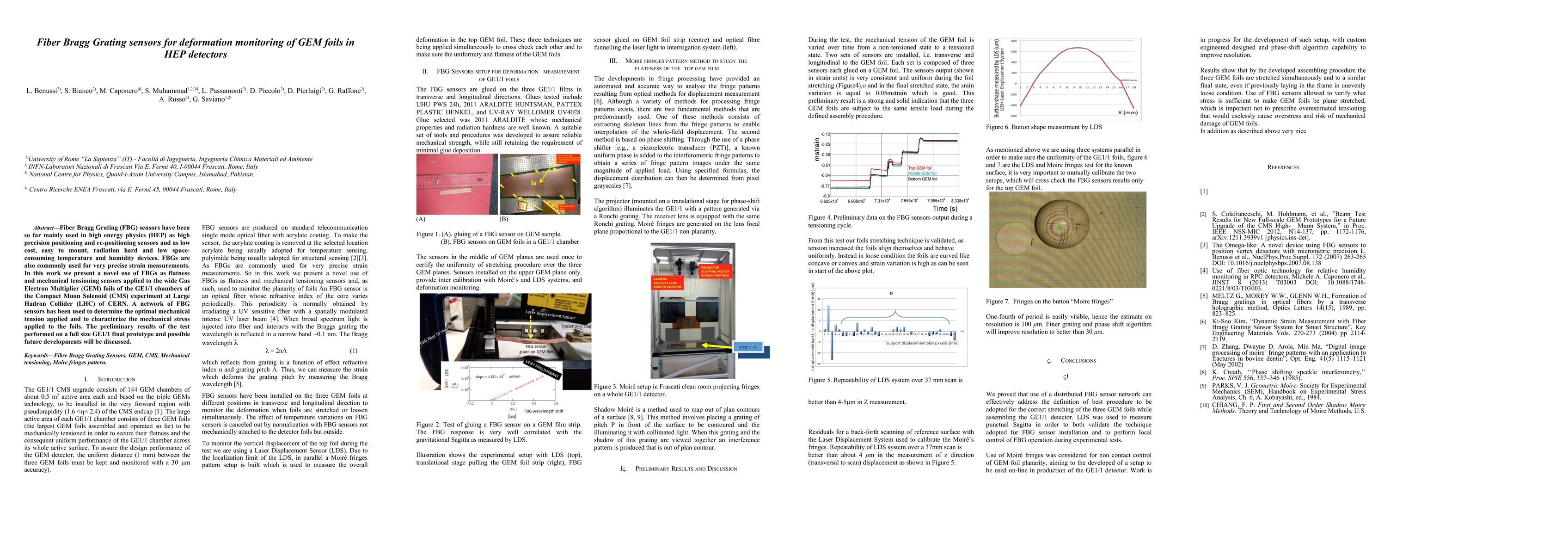 This paper explores the application of Fiber Bragg Grating (FBG) sensors for monitoring deformation in GEM foils used in the CMS experiment at CERN's LHC, focusing on flatness and mechanical tensioning. Preliminary results from a full-size prototype indicate the potential for optimizing mechanical tension and stress characterization.