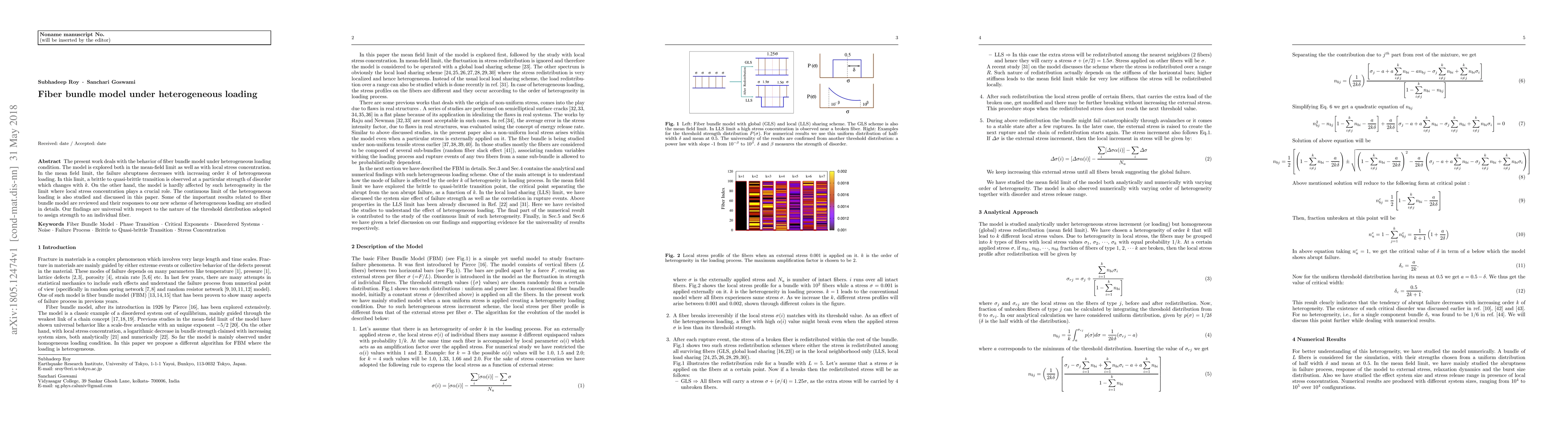 This paper investigates the fiber bundle model under heterogeneous loading, showing that failure abruptness decreases with higher order k in the mean-field limit, leading to a brittle to quasi-brittle transition. In contrast, local stress concentration has minimal effect on the model, and the continuous limit of heterogeneous loading is also analyzed.