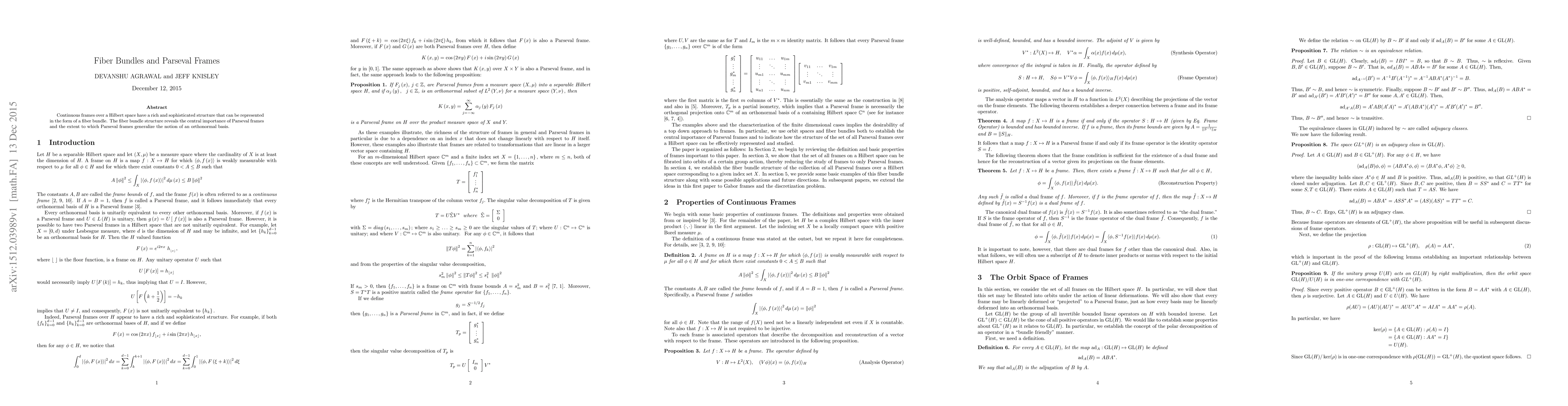 Continuous frames over a Hilbert space have a rich and sophisticated structure that can be represented in the form of a fiber bundle. The fiber bundle structure reveals the central importance of Parseval frames and the extent to which Parseval frames generalize the notion of an orthonormal basis.