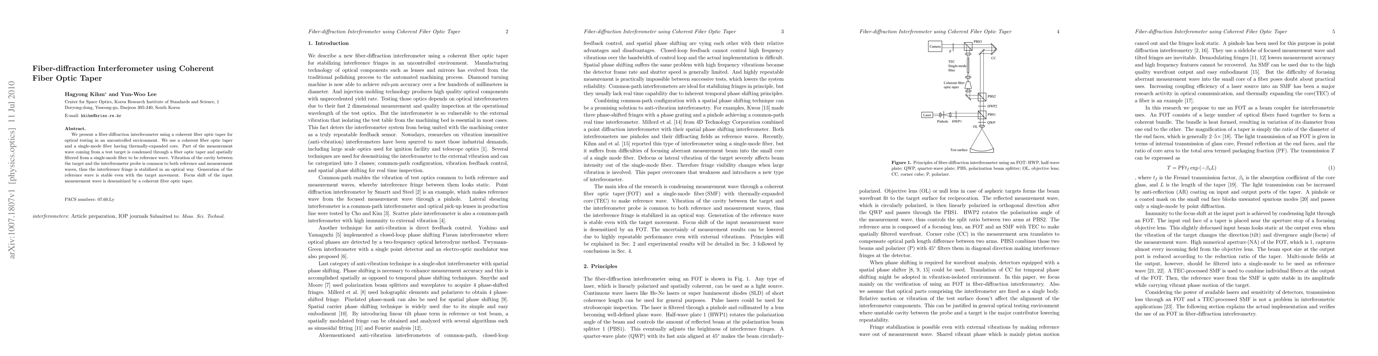 This research paper introduces a fiber-diffraction interferometer utilizing a coherent fiber optic taper to enhance optical testing in uncontrolled environments. The interferometer uses a taper to stabilize interference fringes and desensitize focus shifts, maintaining stable reference wave generation despite target movement.
