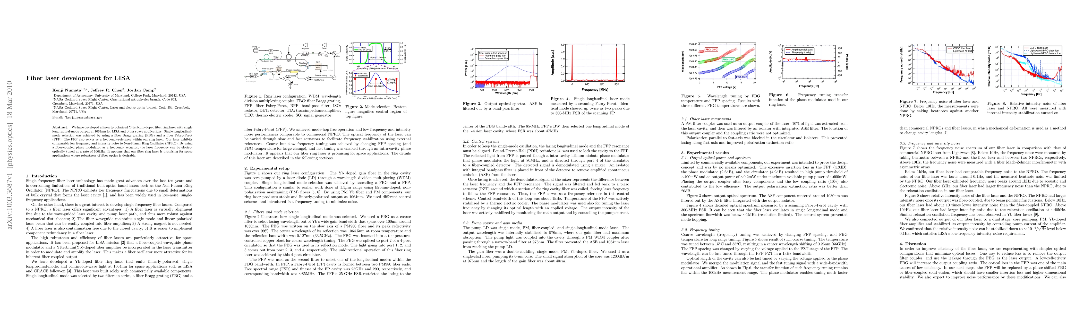 Researchers developed a fiber laser for LISA that achieves single longitudinal-mode output and comparable low frequency and intensity noise to existing oscillators. The laser can be electro-optically tuned at 100kHz using a phase modulator.