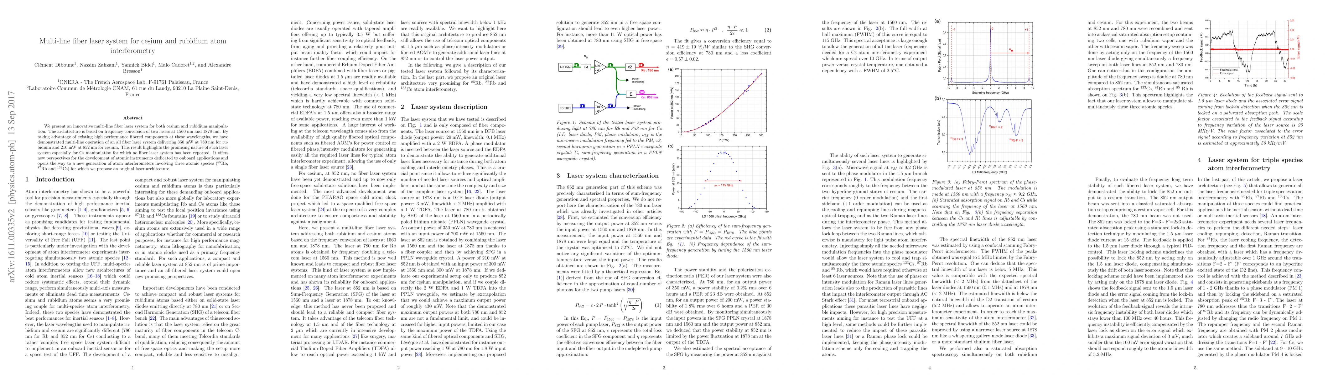 This paper introduces a novel fiber laser system enabling manipulation of cesium and rubidium atoms through frequency conversion. It demonstrates an all-fiber laser architecture delivering 350 mW at 780 nm for rubidium and 210 mW at 852 nm for cesium, showcasing potential for atomic instruments in onboard applications and multi-species atom interferometry.
