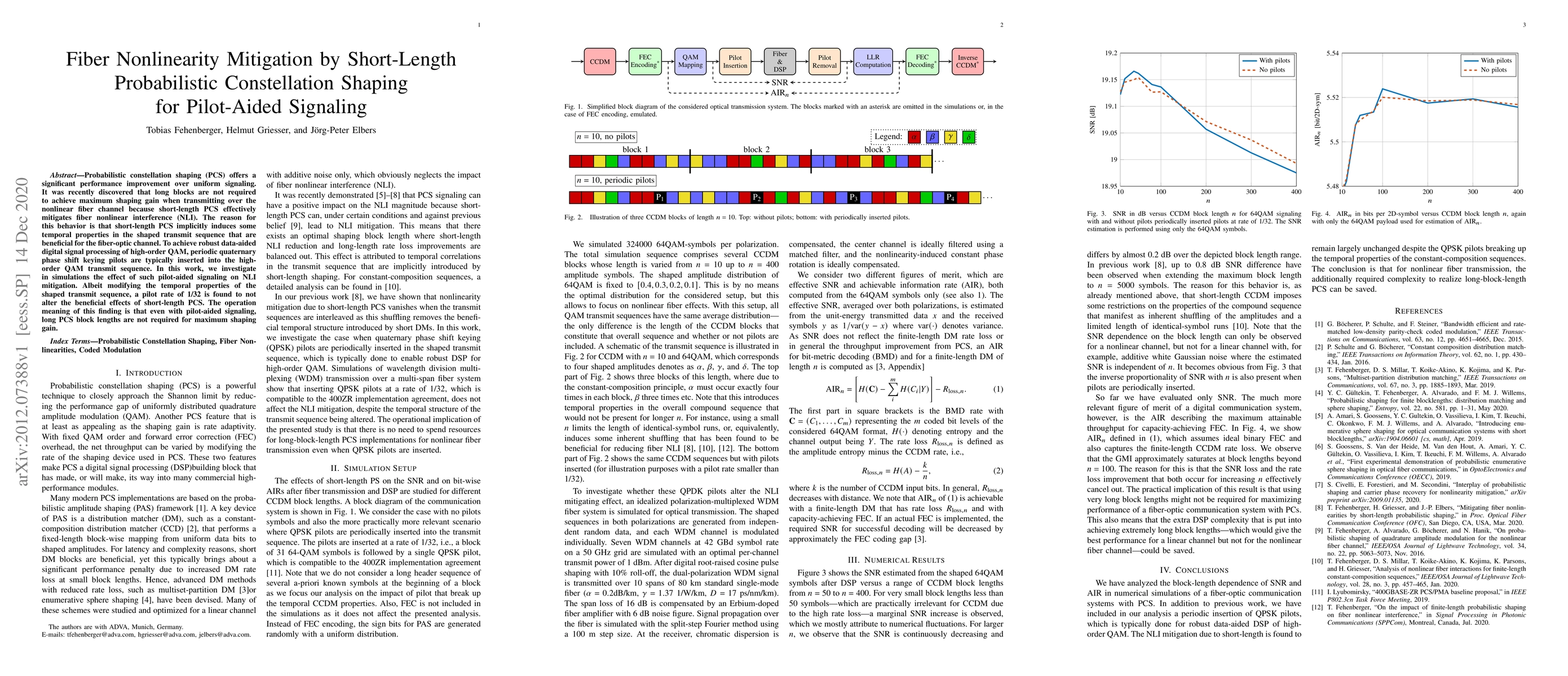 This paper investigates how short-length probabilistic constellation shaping (PCS) can effectively mitigate fiber nonlinearity interference (NLI) without requiring long PCS block lengths. It finds that even with pilot-aided signaling, short-length PCS maintains its beneficial effects, indicating that long PCS blocks are unnecessary for optimal performance.