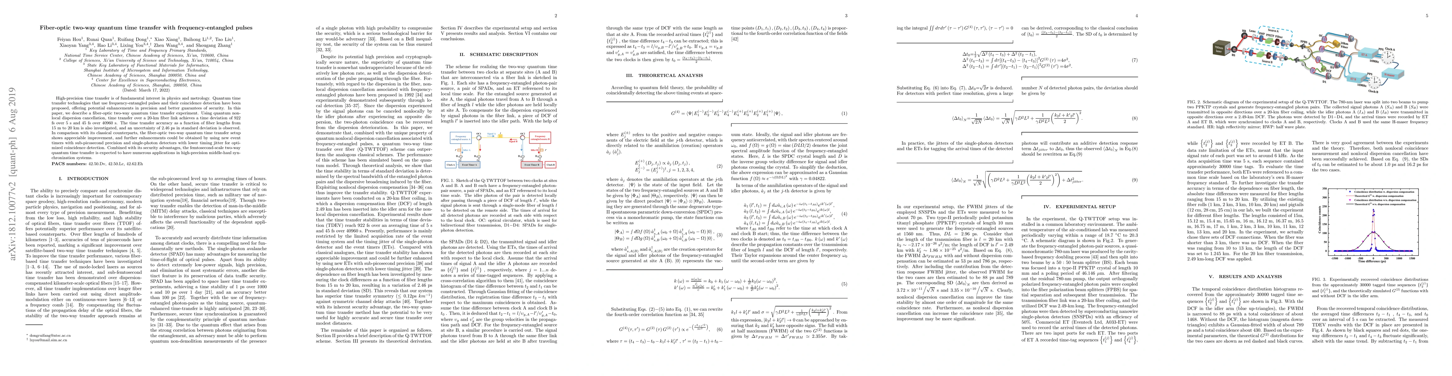 The research describes a fiber-optic two-way quantum time transfer experiment using frequency-entangled pulses and quantum nonlocal dispersion cancellation.