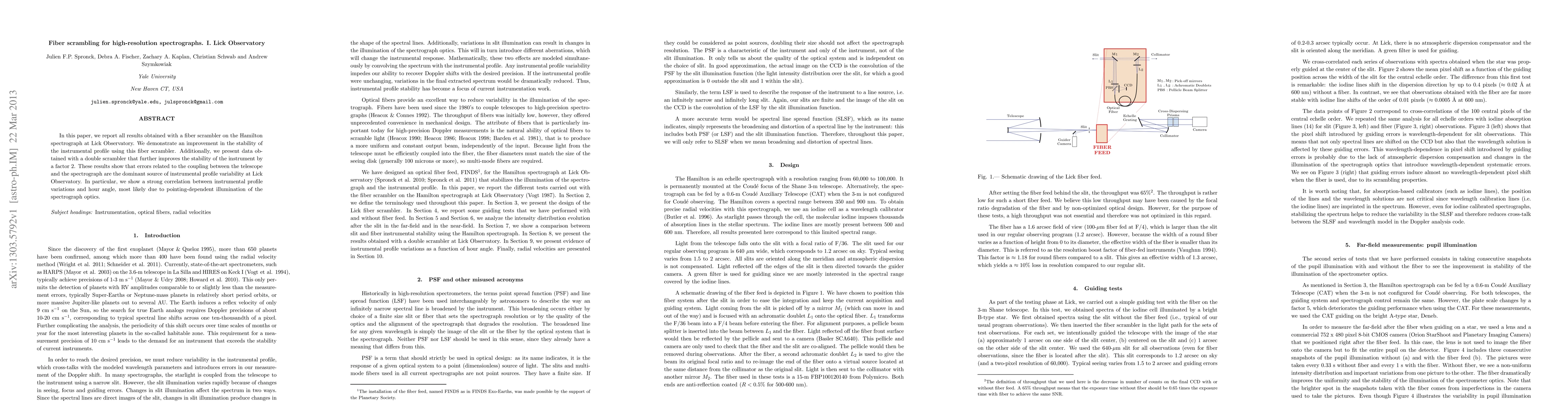 This paper reports on the use of fiber scramblers on the Hamilton spectrograph at Lick Observatory, demonstrating improved stability in the instrumental profile and showing that the coupling between the telescope and spectrograph is the main source of variability, with significant correlation to hour angle likely due to varying illumination.