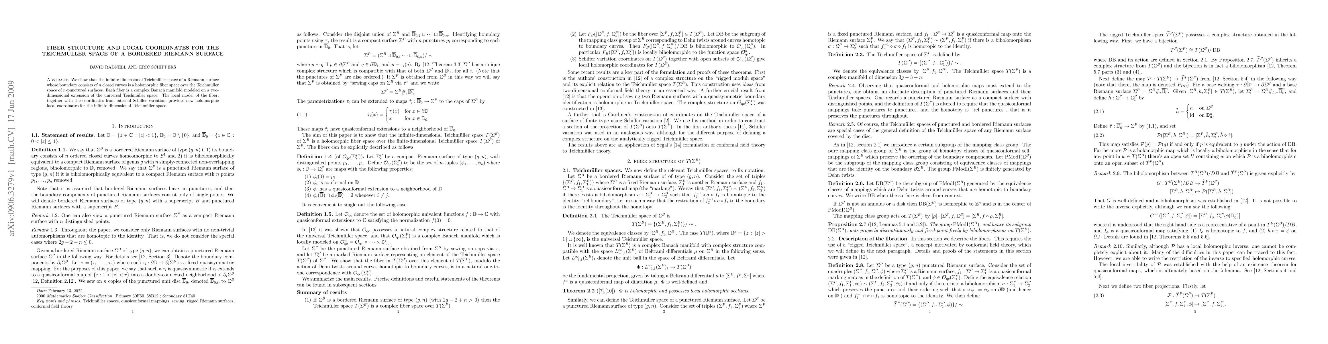 This paper demonstrates that the infinite-dimensional Teichmueller space of a Riemann surface with n boundary curves is a holomorphic fiber space over the Teichmueller space of n-punctured surfaces, with each fiber being a complex Banach manifold. The study introduces new holomorphic local coordinates using the local model of the fiber and internal Schiffer variation.