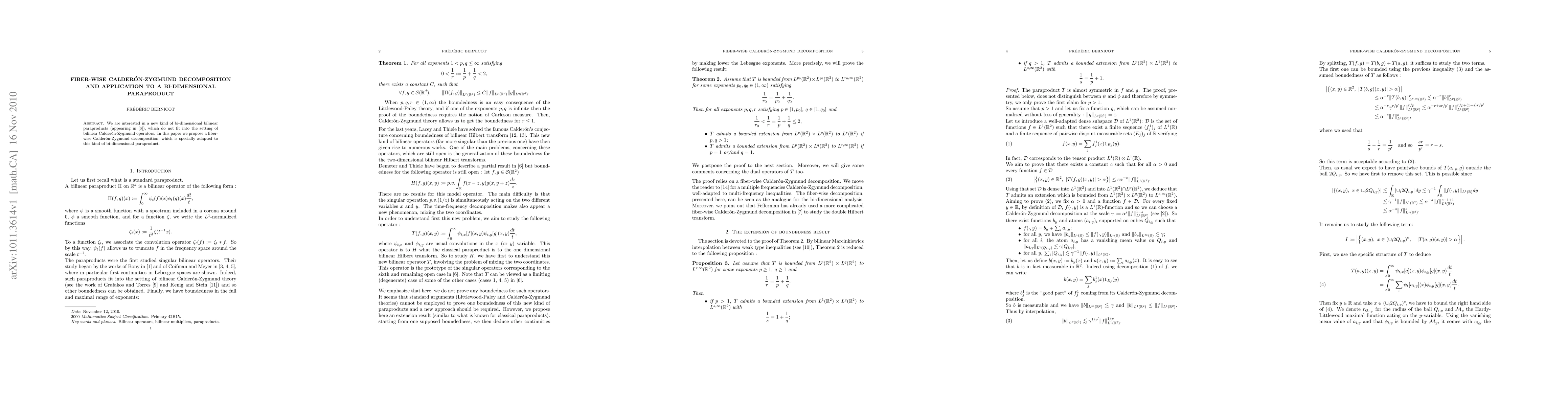 This paper introduces a fiber-wise Calderón-Zygmund decomposition tailored for a novel type of bi-dimensional bilinear paraproducts that cannot be handled by standard Calderón-Zygmund operators. The proposed decomposition is specifically designed to address these new paraproducts.