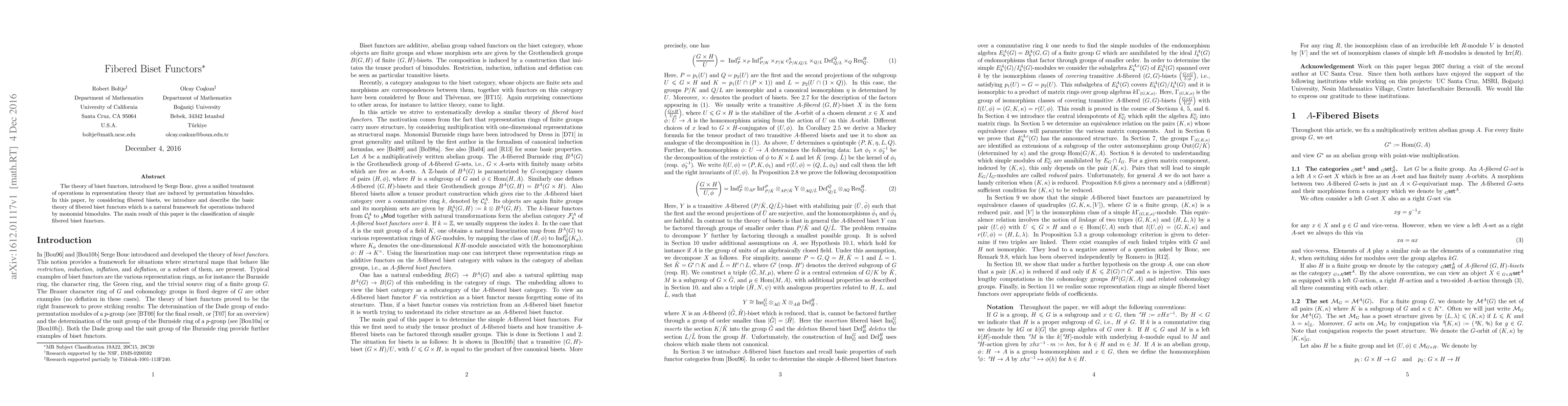 The research introduces and describes the basic theory of fibered biset functors, which is a natural framework for operations induced by monomial bimodules, and classifies simple fibered biset functors.
