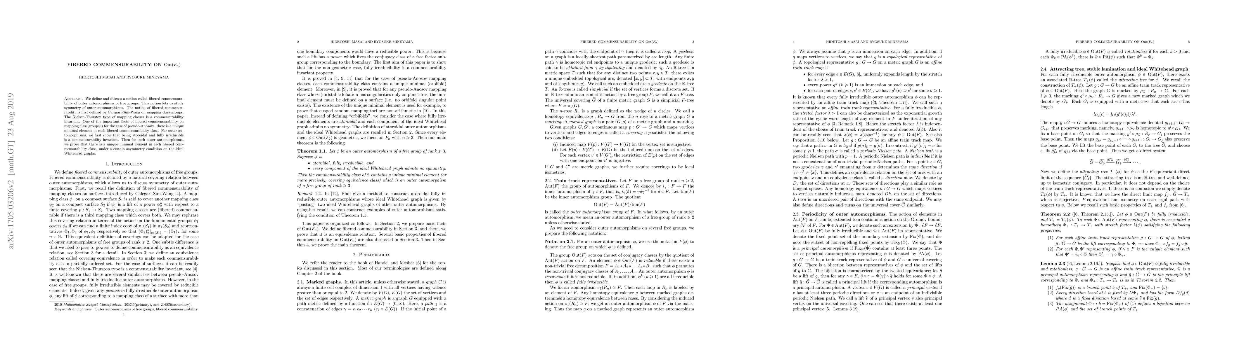 This paper introduces fibered commensurability for outer automorphisms of free groups, extending a concept initially defined for mapping class groups. It demonstrates that for certain atoroidal and fully irreducible outer automorphisms, there is a unique minimal element in each fibered commensurability class, contingent on an asymmetry condition regarding ideal Whitehead graphs.