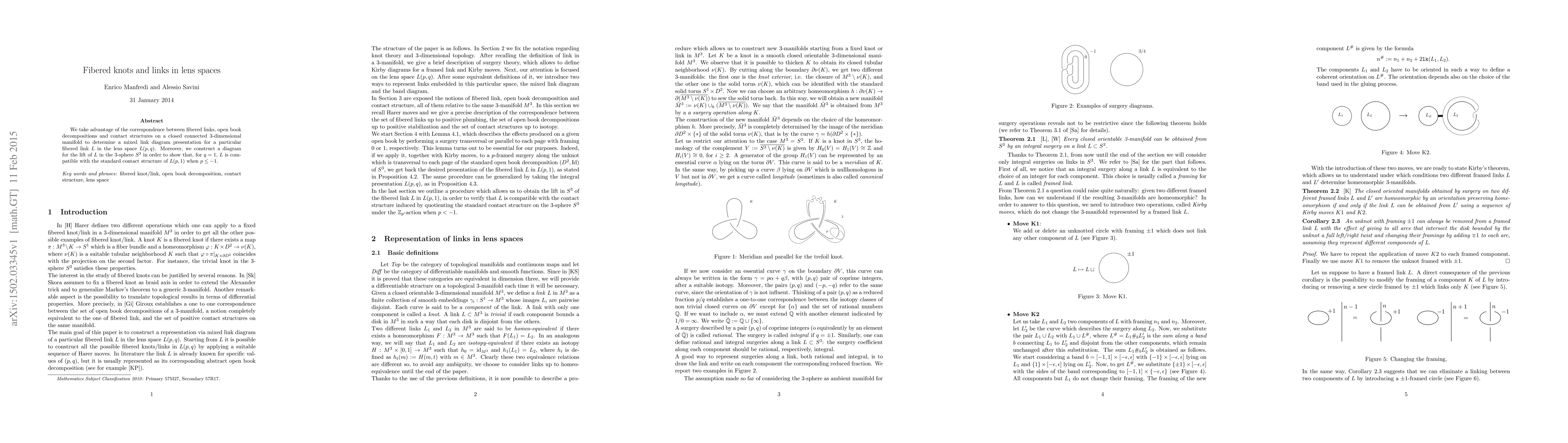 This paper explores the correspondence between fibered links and open book decompositions to derive a mixed link diagram for a specific fibered link in lens spaces. It also constructs a diagram for the link's lift in $S^3$ to demonstrate compatibility with the standard contact structure for $p \leq -1$ when $q=1$.