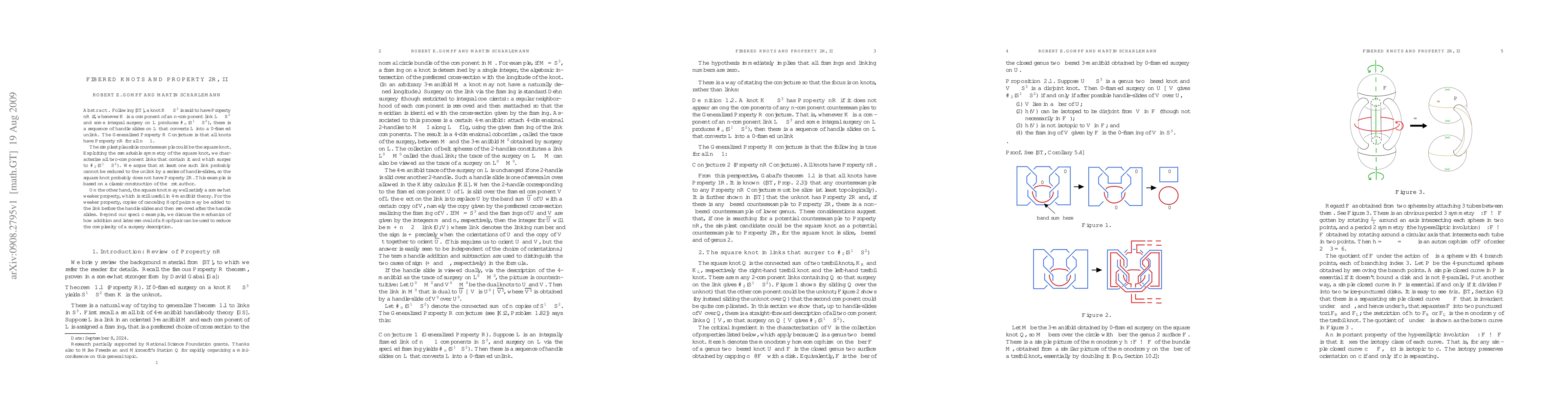 A knot K in the 3-sphere is said to have Property nR if, whenever K is a component of an n-component link L and some integral surgery on L produces the connected sum of n copies of S^1 x S^2, there is a sequence of handle slides on L that converts L into a 0-framed unlink. The Generalized Property R Conjecture is that all knots have Property nR for all n. The simplest plausible counterexample could be the square knot. Exploiting the remarkable symmetry of the square knot, we characterize all two-component links that contain it and which surger to S^1 x S^2 # S^1 x S^2. We argue that at least one such link probably cannot be reduced to the unlink by a series of handle-slides, so the square knot probably does not have Property 2R. This example is based on a classic construction of the first author. On the other hand, the square knot may well satisfy a somewhat weaker property, which is still useful in 4-manifold theory. For the weaker property, copies of canceling Hopf pairs may be added to the link before the handle slides and then removed after the handle slides. Beyond our specific example, we discuss the mechanics of how addition and later removal of a Hopf pair can be used to reduce the complexity of a surgery description.