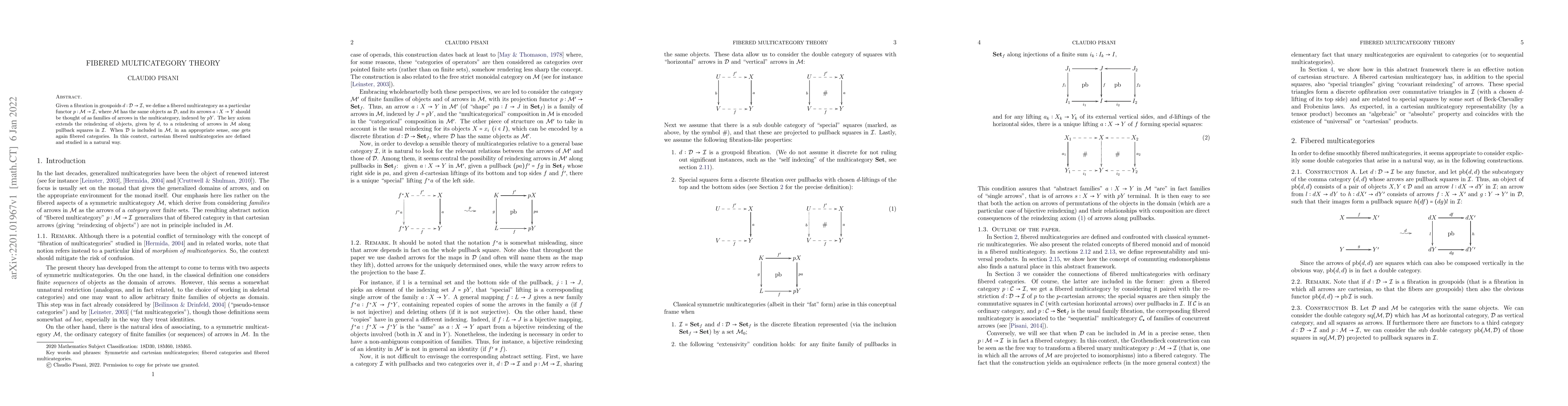**Summary:** This paper introduces the concept of fibered multicategories through functors that extend reindexing of objects and arrows indexed by pullback squares in a given fibration, and discusses cartesian fibered multicategories within this framework.